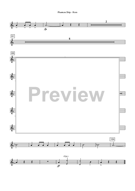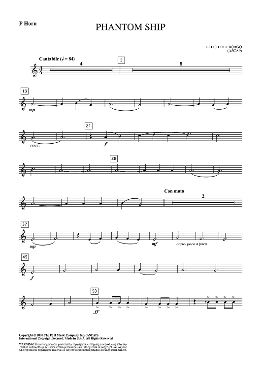Digital Sheet Music for Phantom Ship - Horn in F by Elliot Del Borgo scored for Concert Band; id:404307