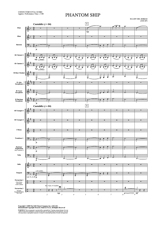 Digital Sheet Music for Phantom Ship - Score by Elliot Del Borgo scored for Concert Band; id:404294