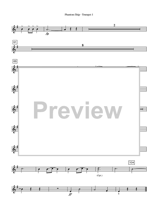 Digital Sheet Music for Phantom Ship - Trumpet 1 in B-flat by Elliot Del Borgo scored for Concert Band; id:404305