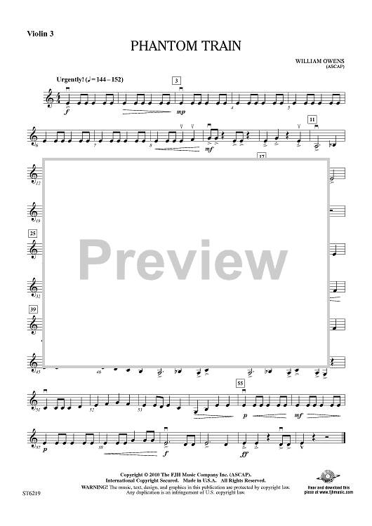 Digital Sheet Music for Phantom Train - Violin 3 (Viola T.C.) by William Owens scored for Orchestra; id:411631