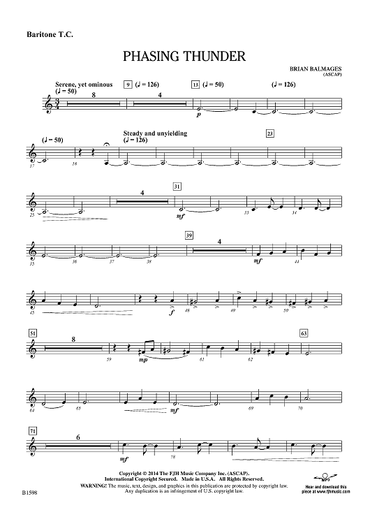 "Phasing Thunder - Baritone TC" Sheet Music by Brian Balmages