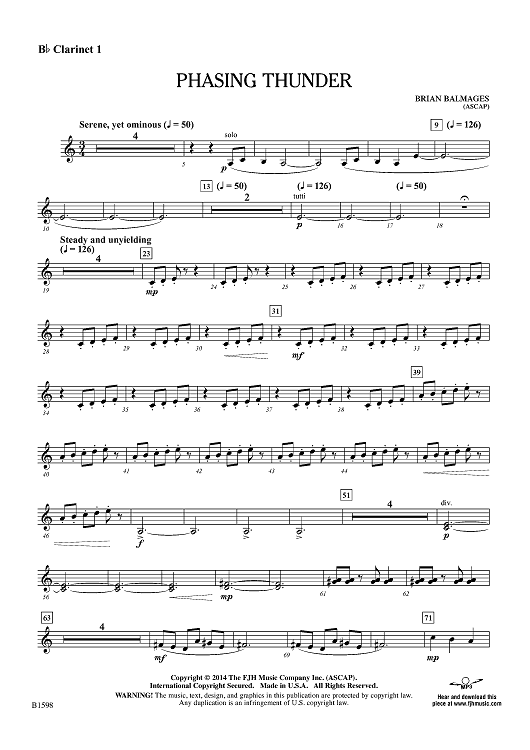 Digital Sheet Music for Phasing Thunder - Bb Clarinet 1 by Brian Balmages scored for Concert Band; id:447522