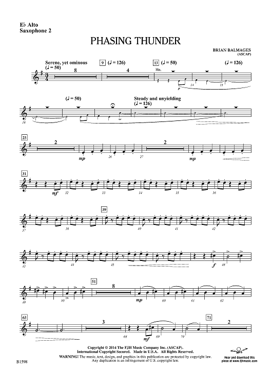 "Phasing Thunder - Eb Alto Sax 2" Sheet Music by Brian Balmages