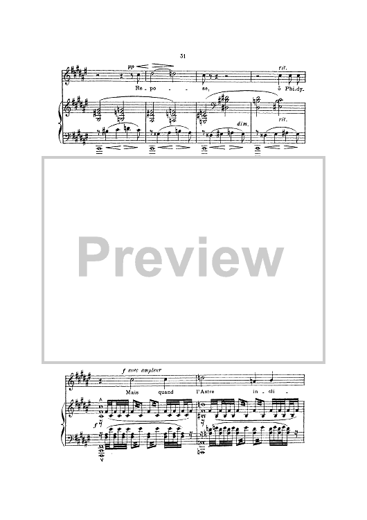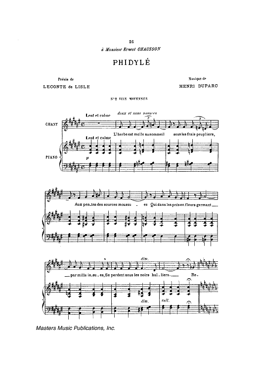 Digital Sheet Music for Phidylé by Henri Duparc, Leconte de Lisle scored for Piano/Vocal; id:444584