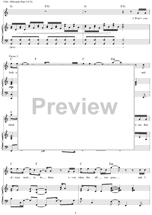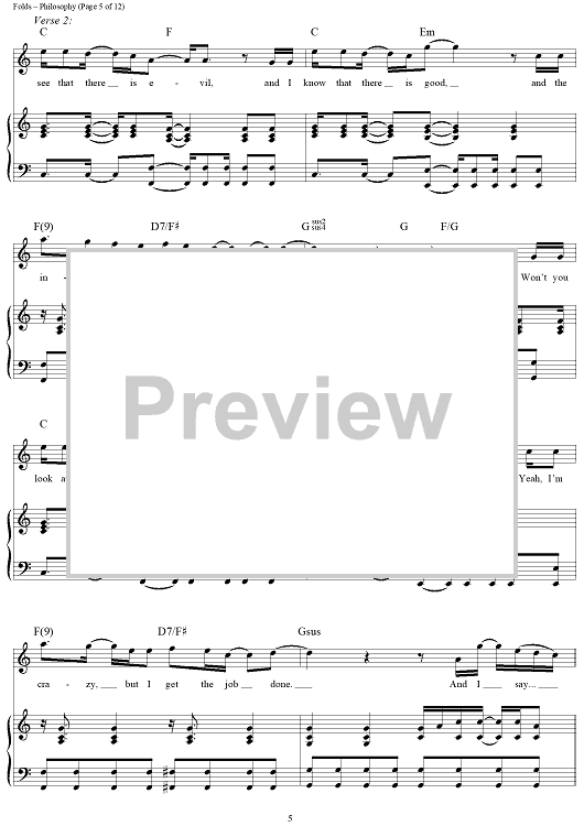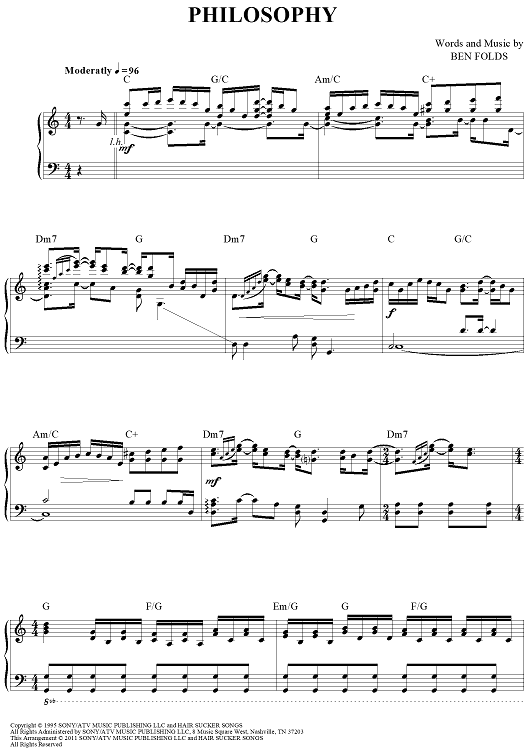 Digital Sheet Music for Philosophy by Ben Folds scored for Piano/Vocal/Chords; id:388440