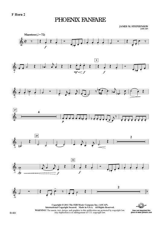 Digital Sheet Music for Phoenix Fanfare - F Horn 2 by James M. Stephenson scored for Concert Band; id:425981