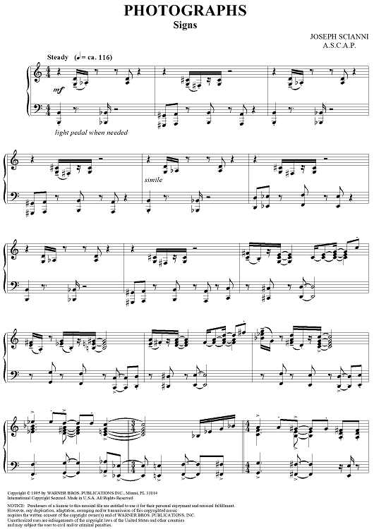 Digital Sheet Music for Photographs (Signs) by Joseph Scianni scored for Piano Solo; id:257401