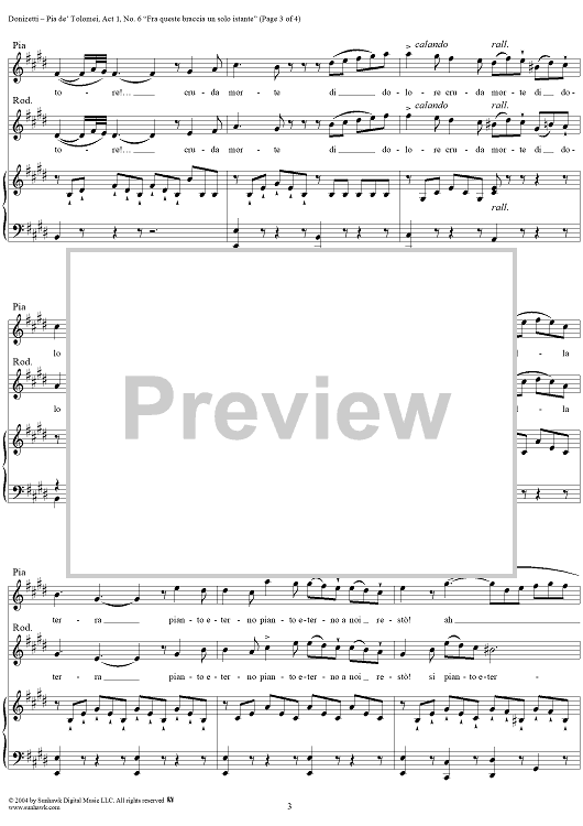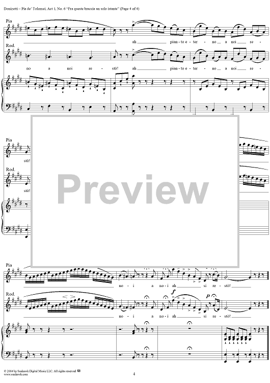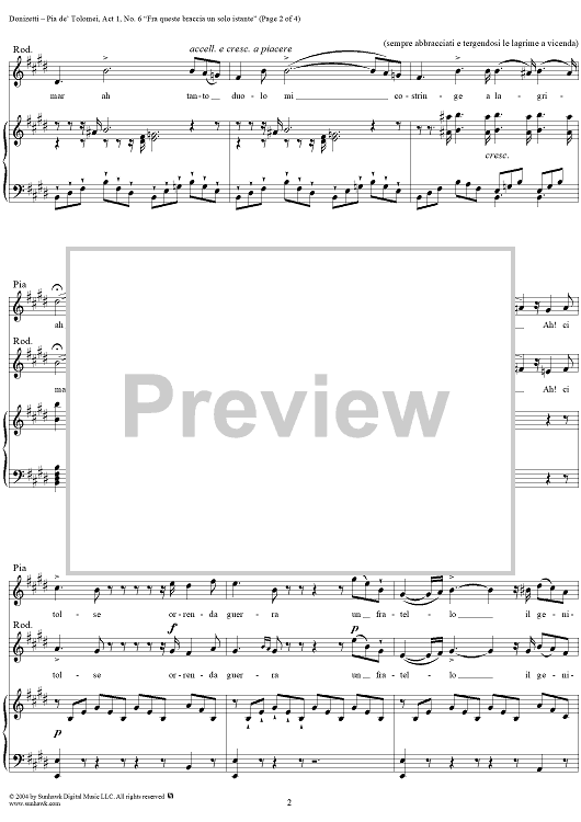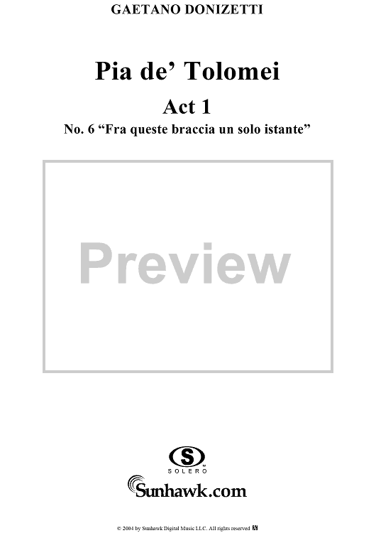 Digital Sheet Music for Pia de' Tolomei, Act 1, No. 6: Duettino - "Fra queste braccia un solo istante" - Score by Gaetano Donizetti, Salvadore Cammarano scored for Vocal Score; id:303456