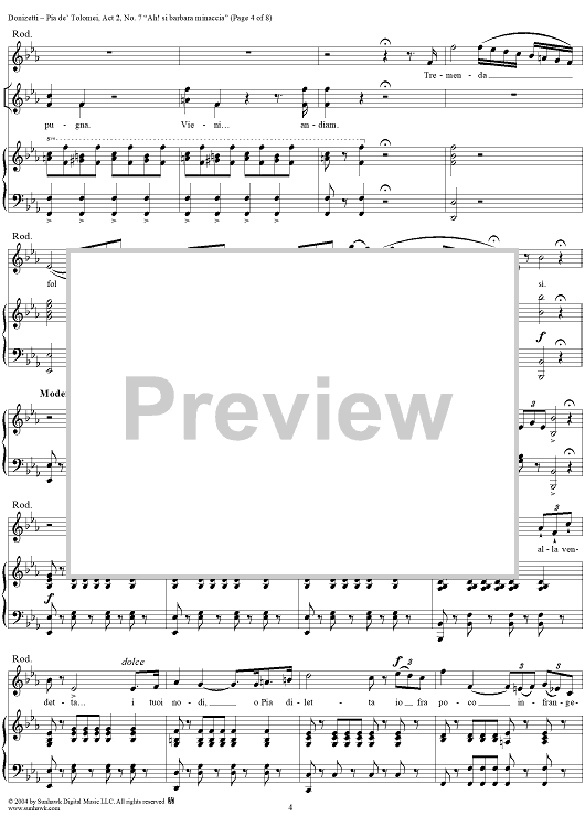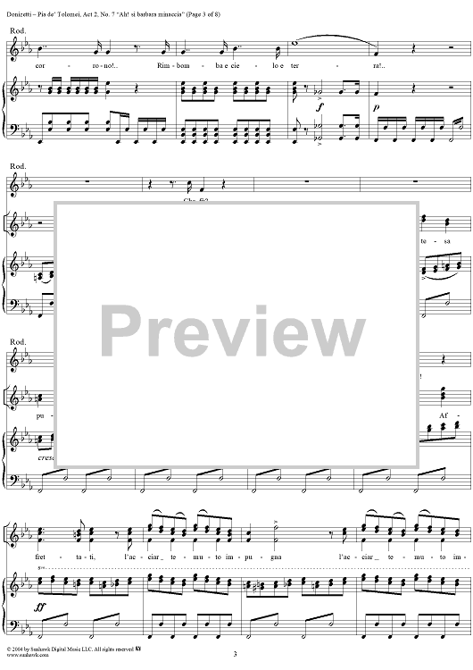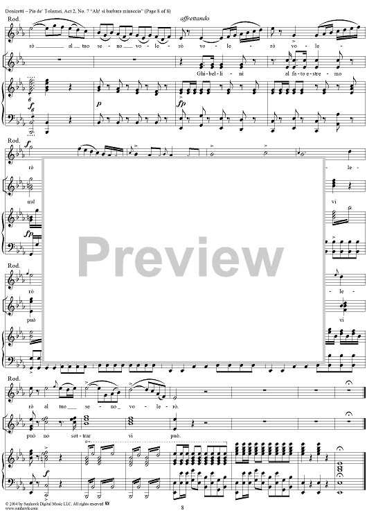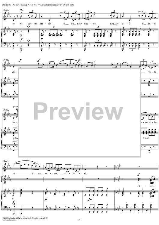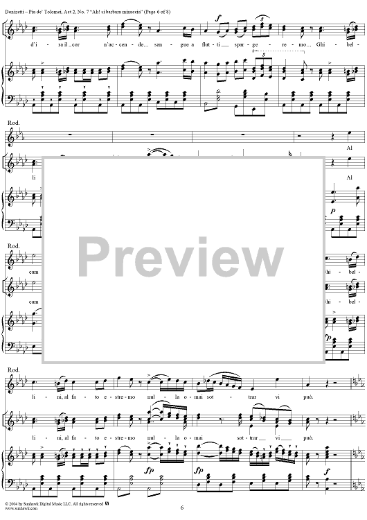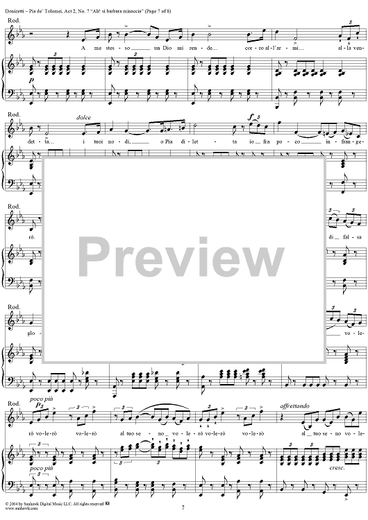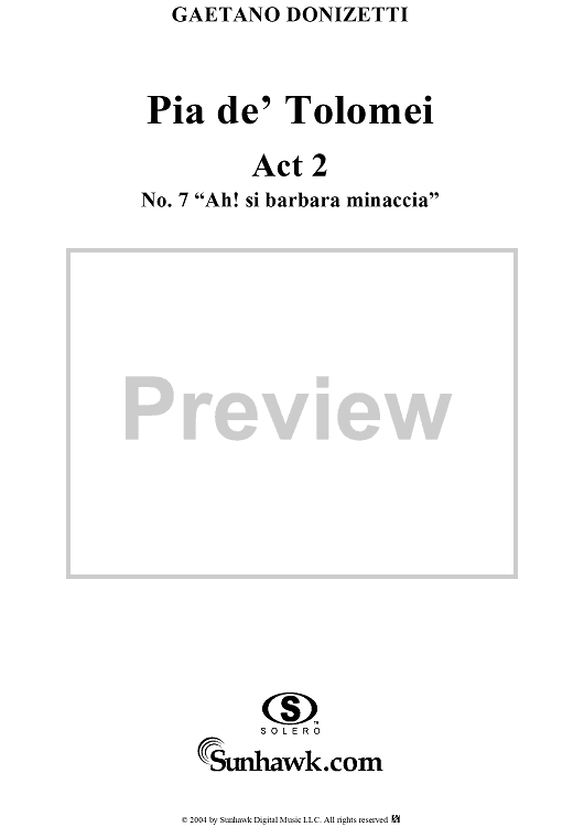 Digital Sheet Music for Pia de' Tolomei, Act 2, No. 7: Aria - "Ah! si barbara minaccia!" - Score by Gaetano Donizetti, Salvadore Cammarano scored for Vocal Score; id:303457