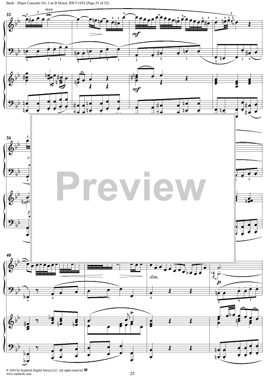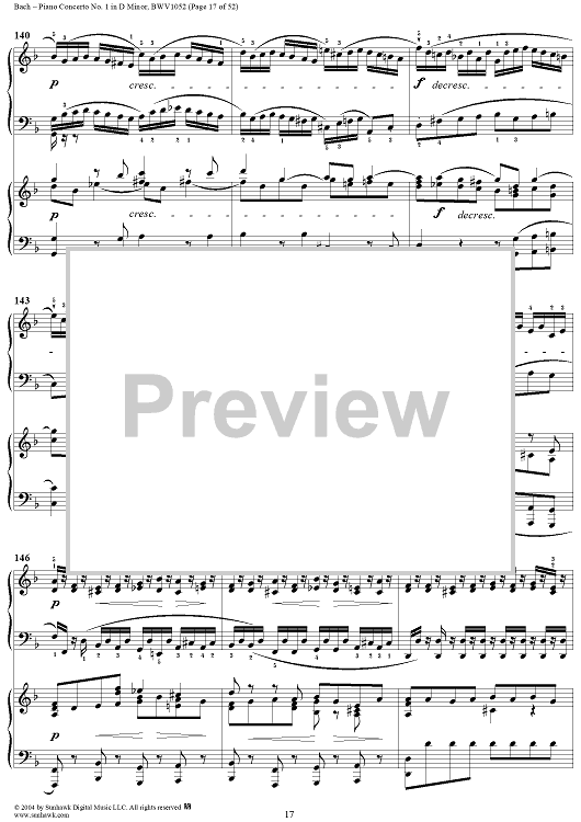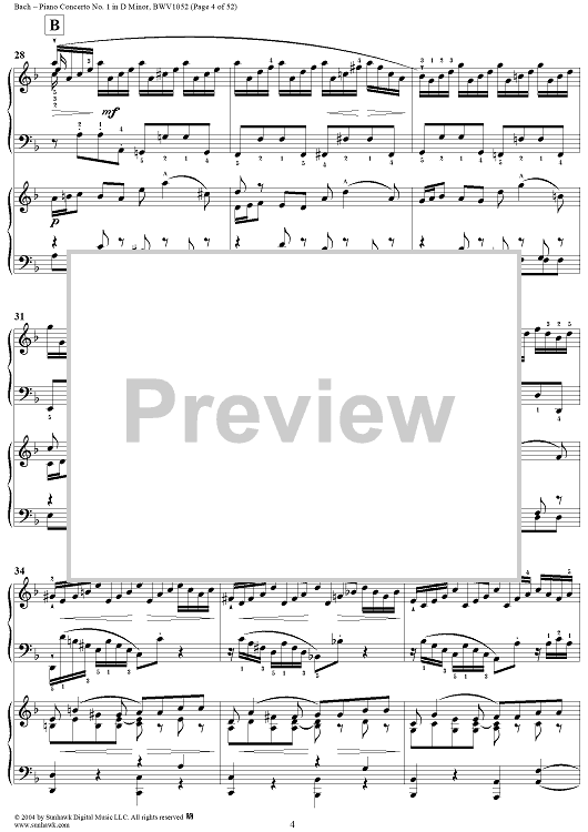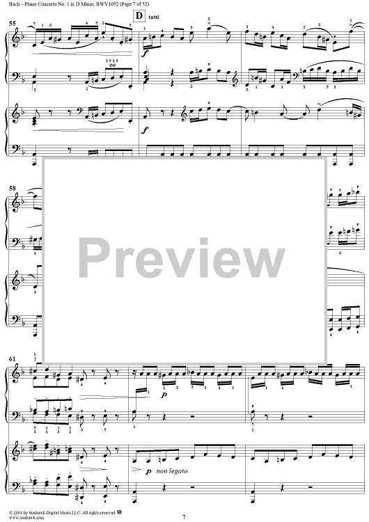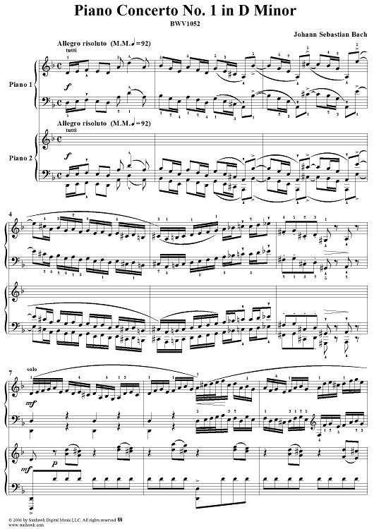 Digital Sheet Music for Piano Concerto in D Minor, BWV1052 by Johann Sebastian Bach scored for 2 Pianos, 4 Hands; id:294560