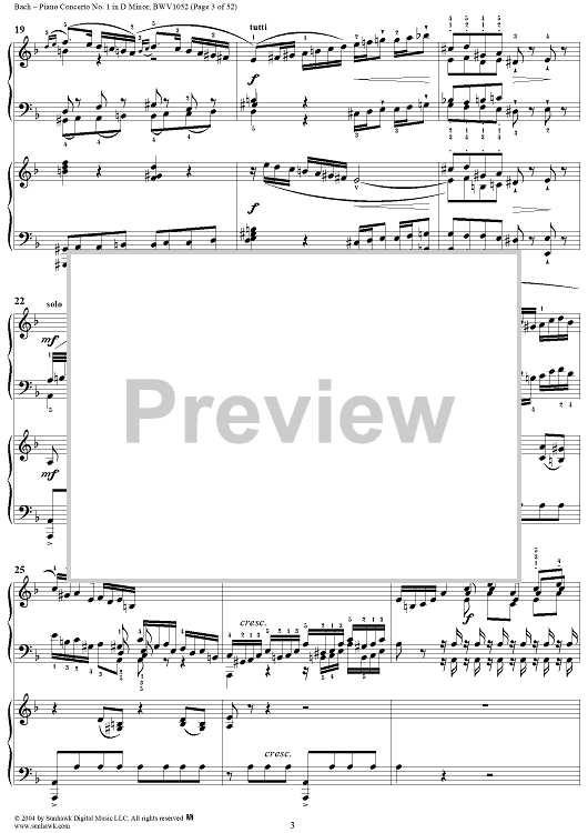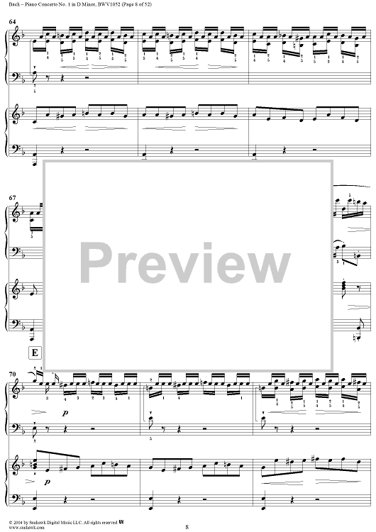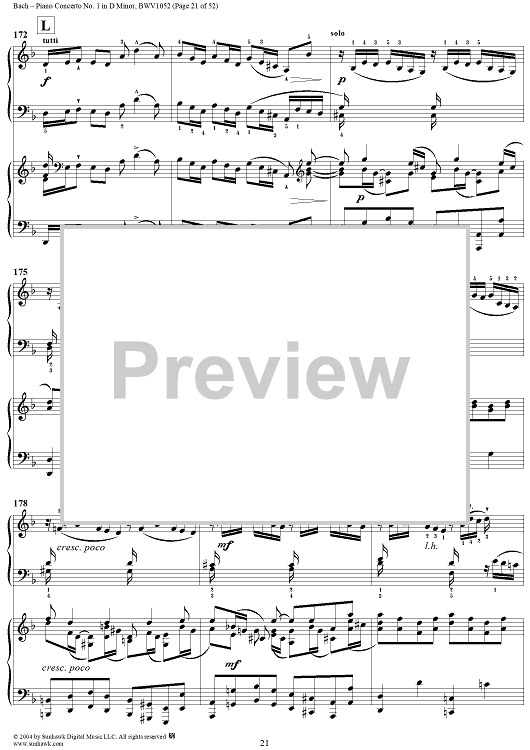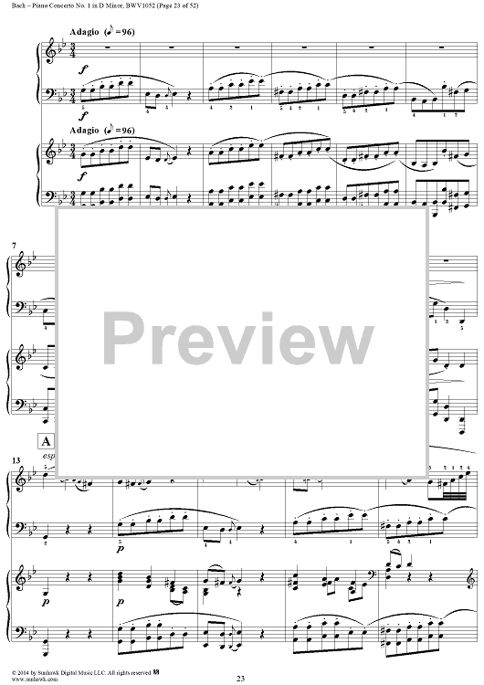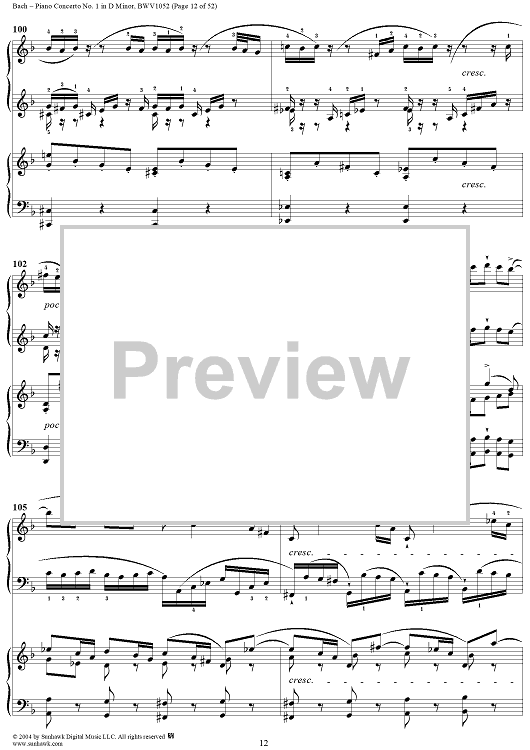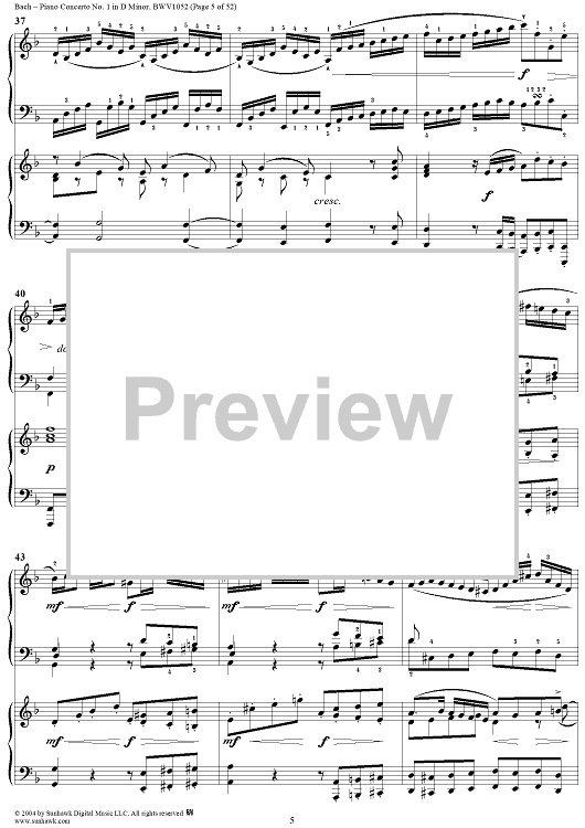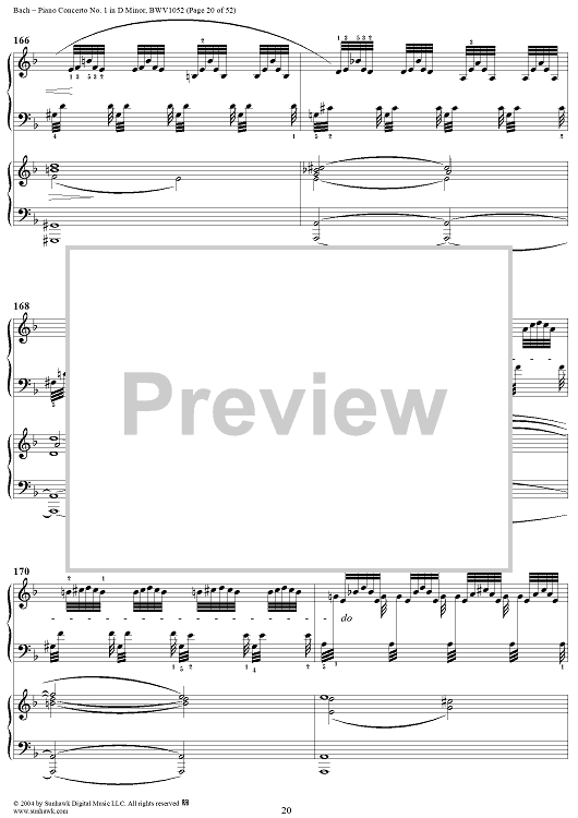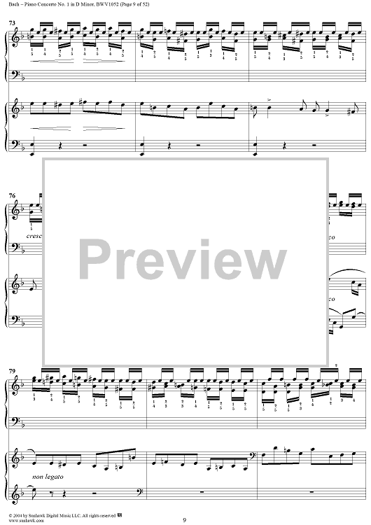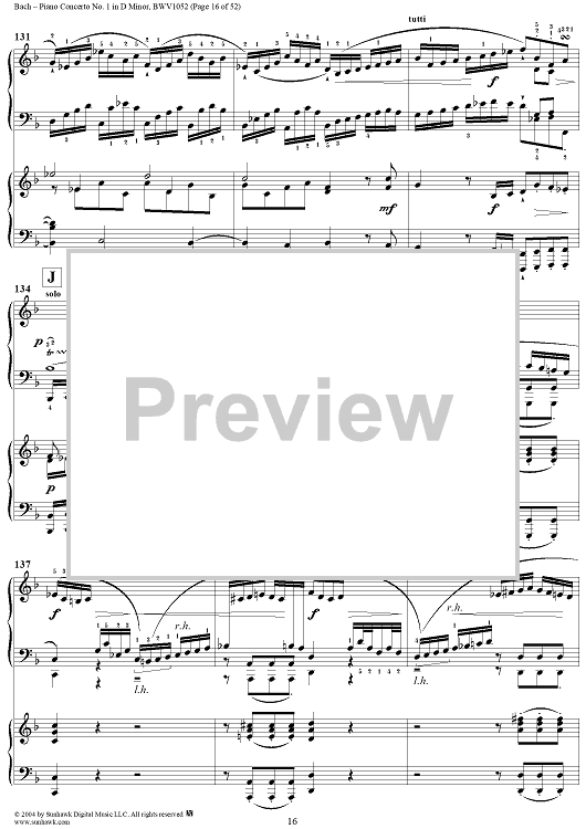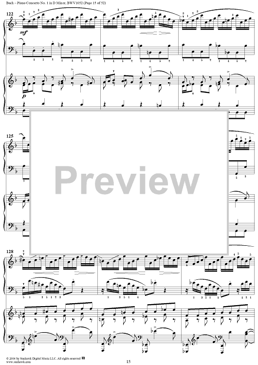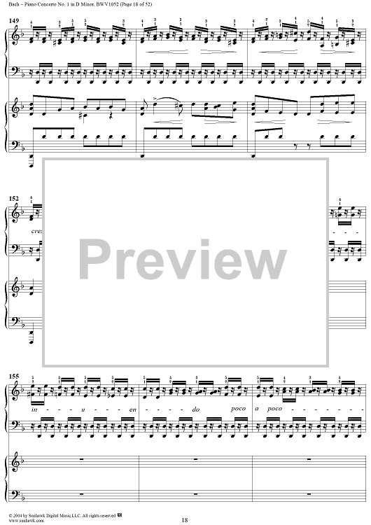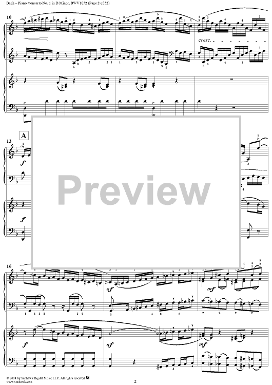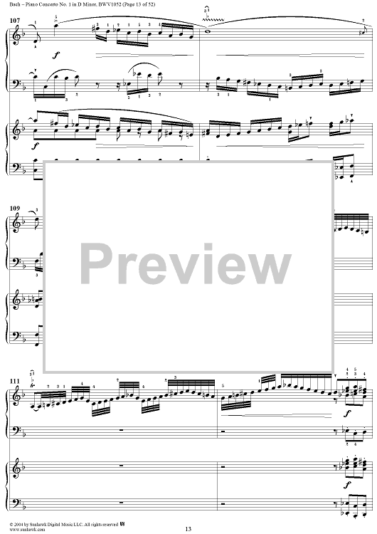 "Piano Concerto in D Minor, BWV1052" Sheet Music by Johann Sebastian Bach