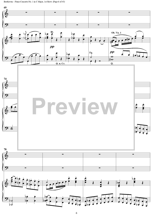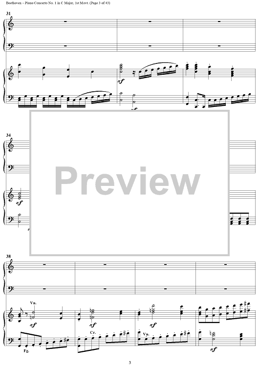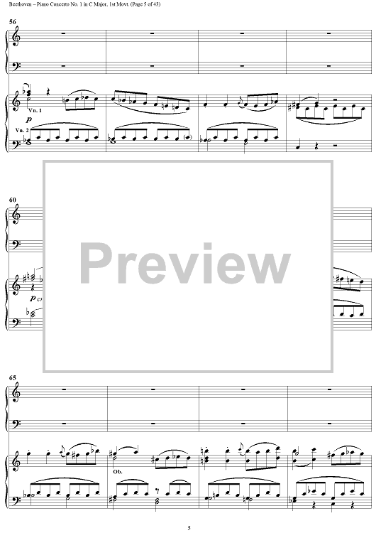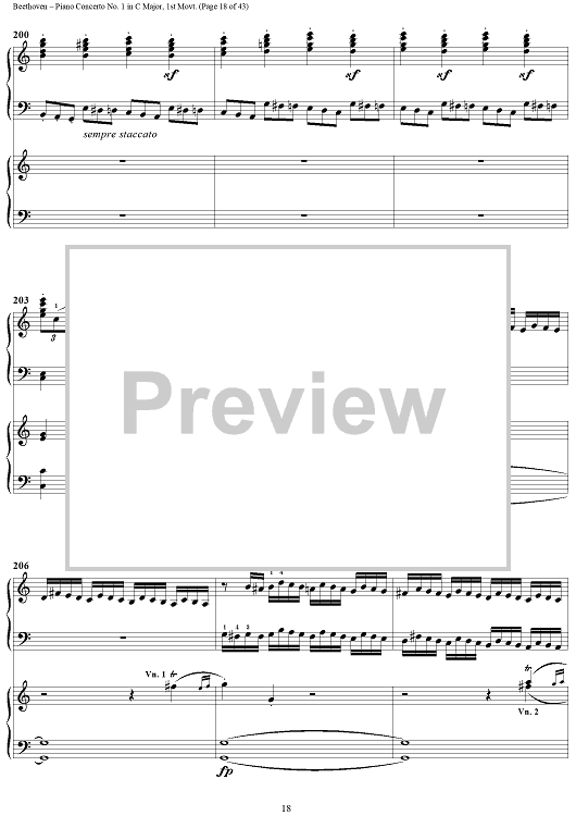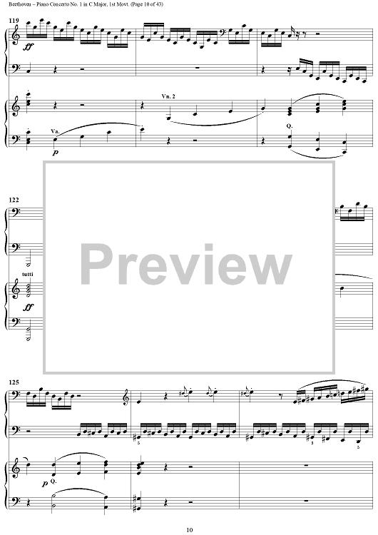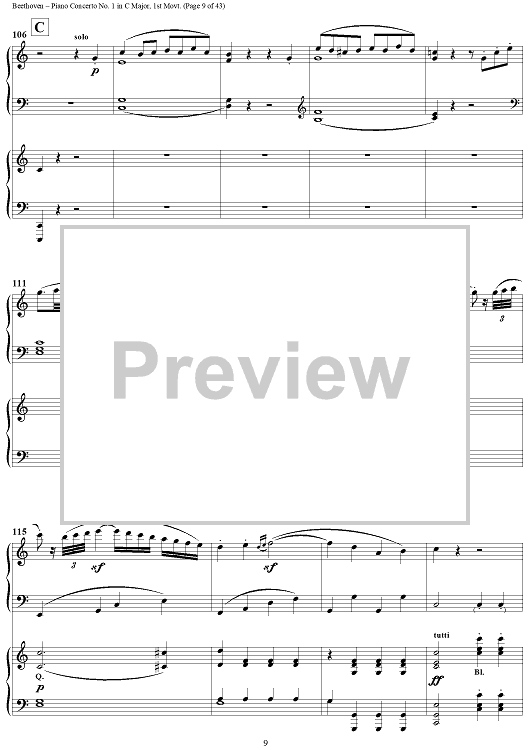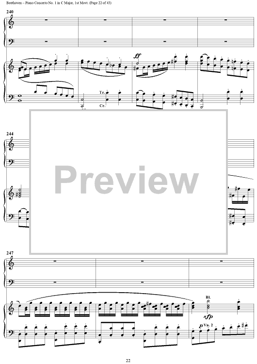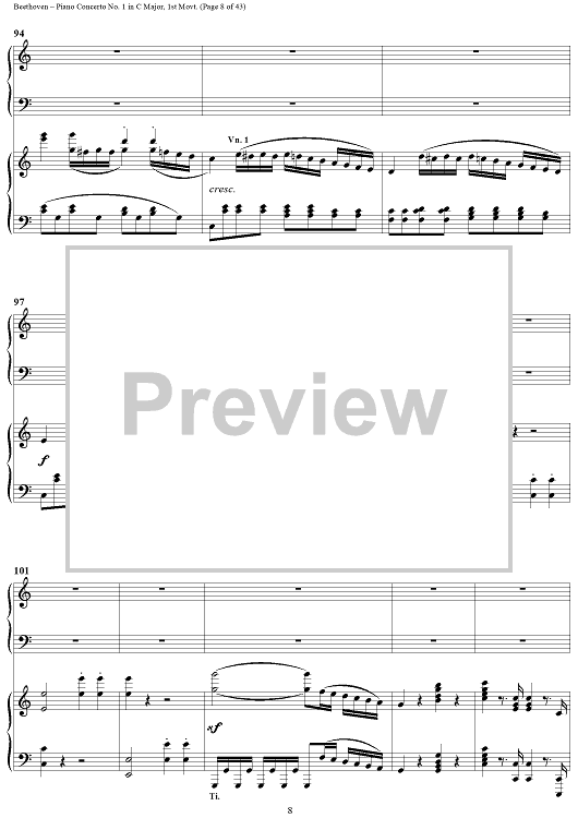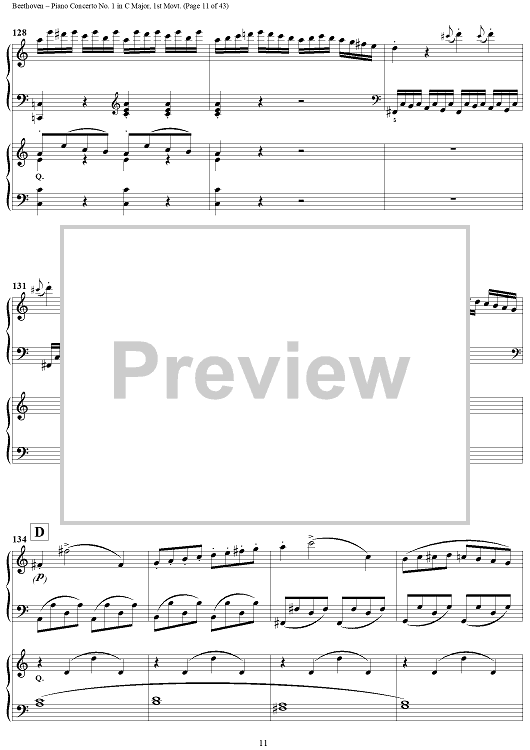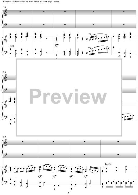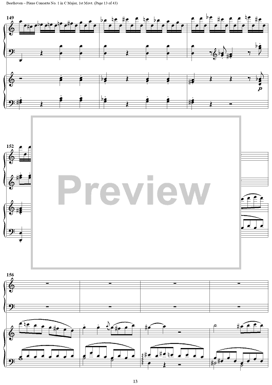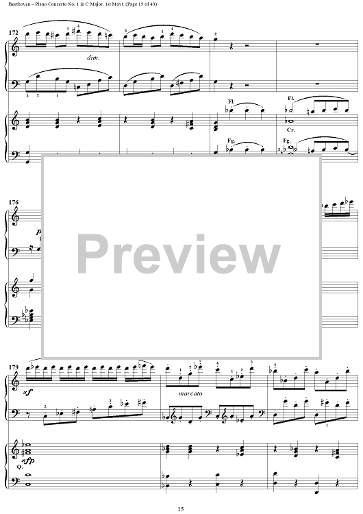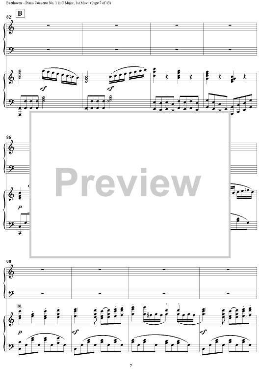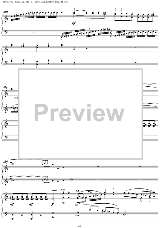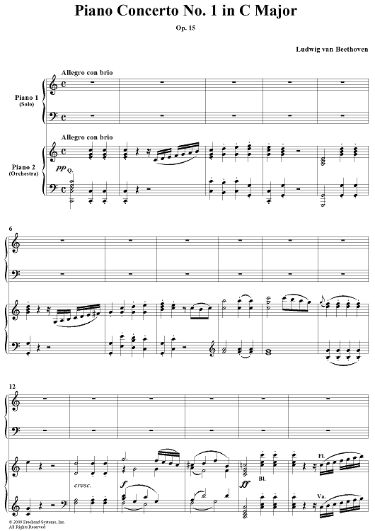 "Piano Concerto No. 1 in C Major, Op. 15, Mvmt. 1" Sheet Music by Ludwig van Beethoven
