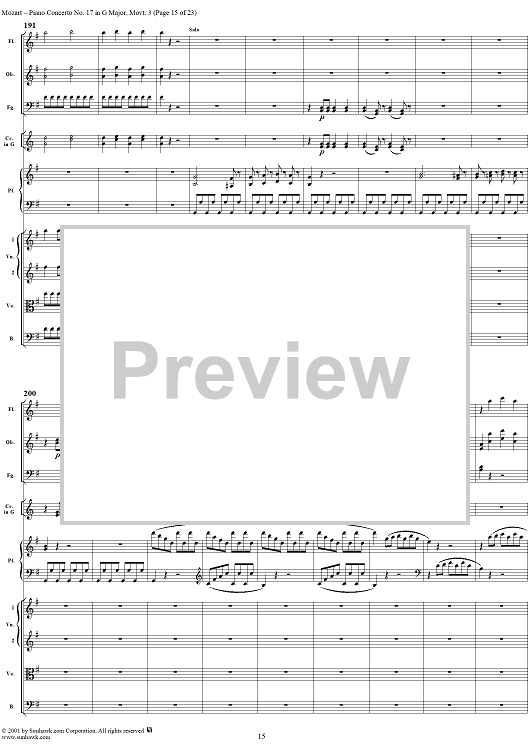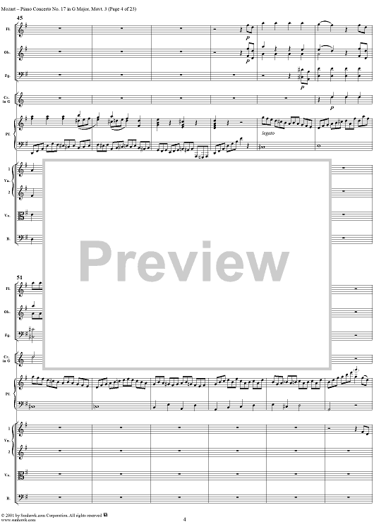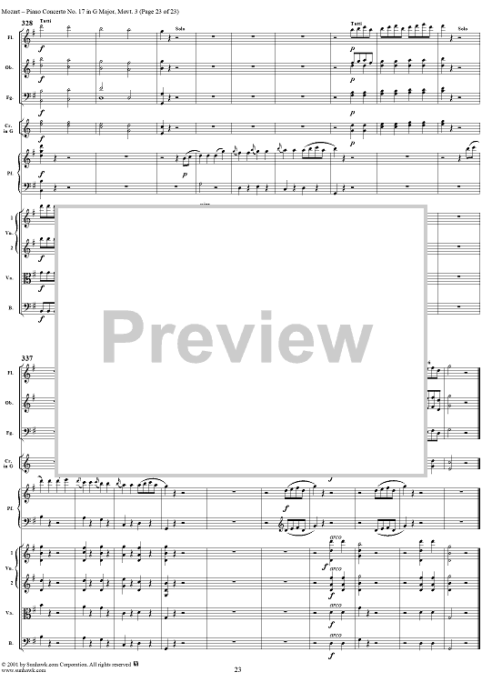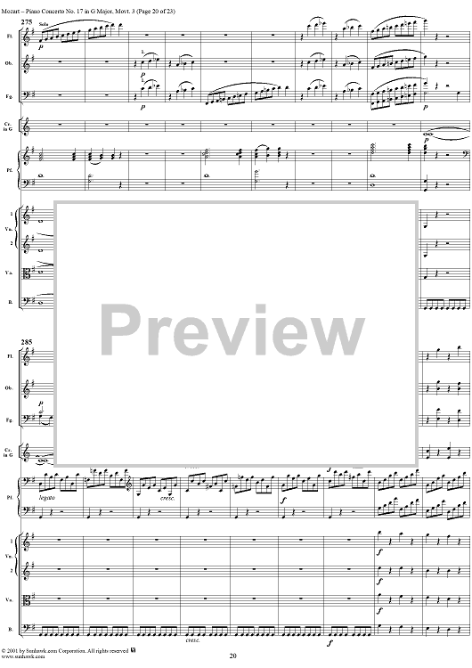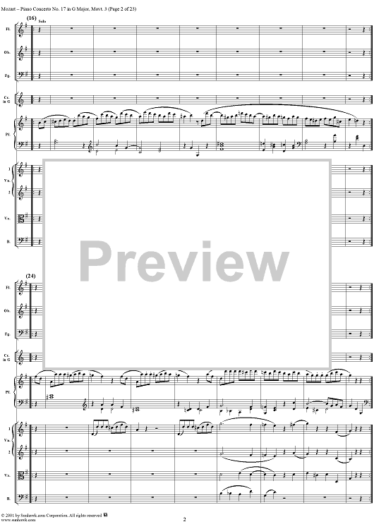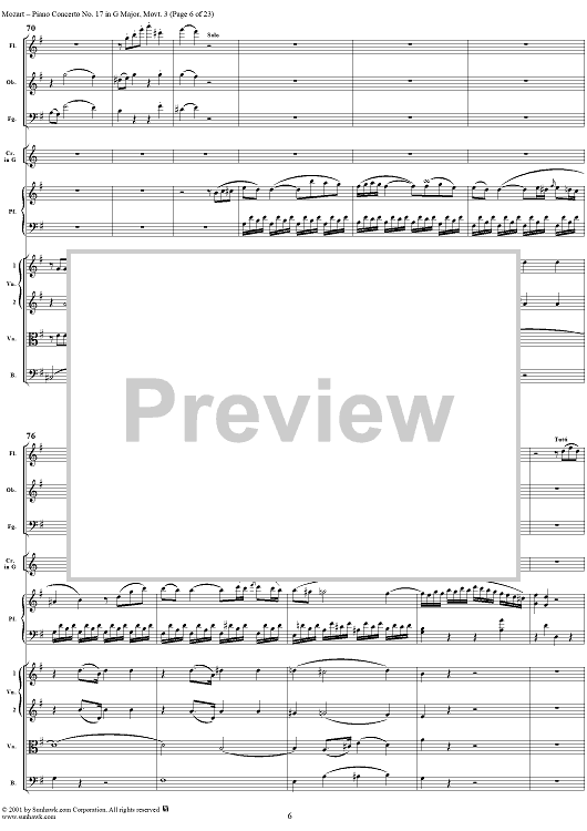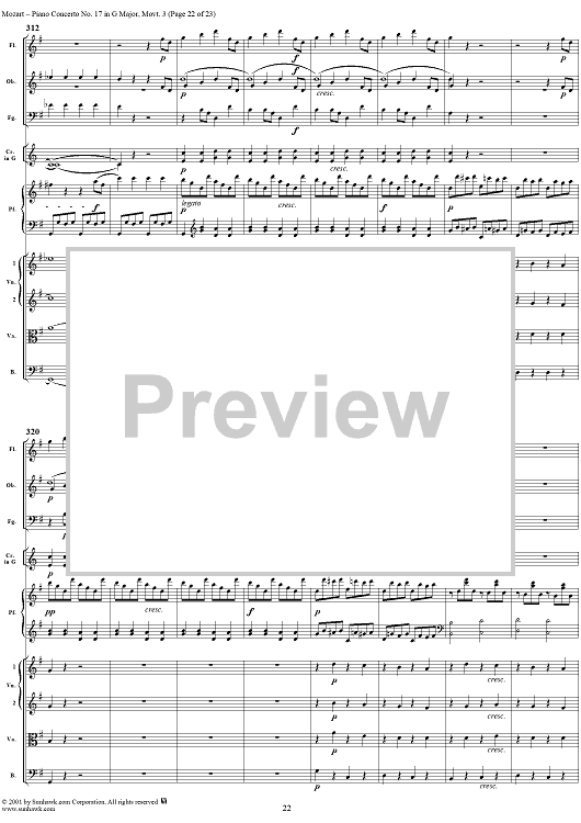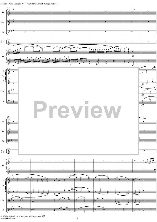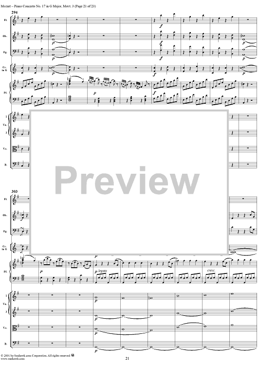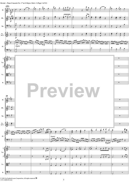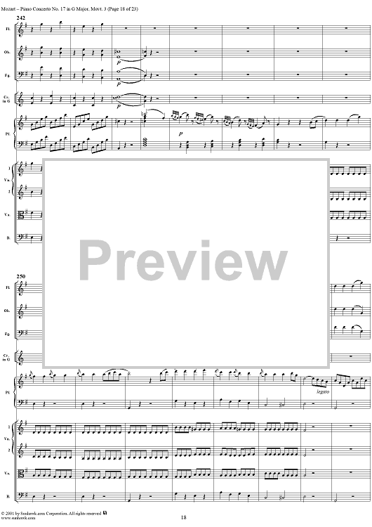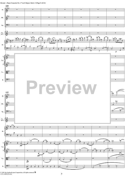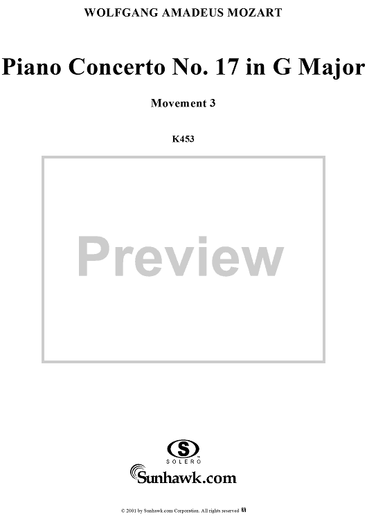 Digital Sheet Music for Piano Concerto No. 17 in G Major, Movement 3 (K453) - Full Score by Wolfgang Amadeus Mozart scored for Piano and Orchestra; id:253198