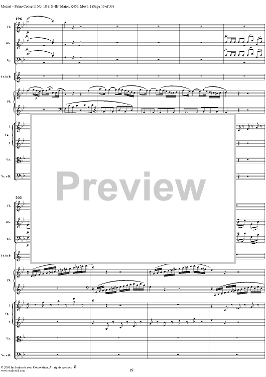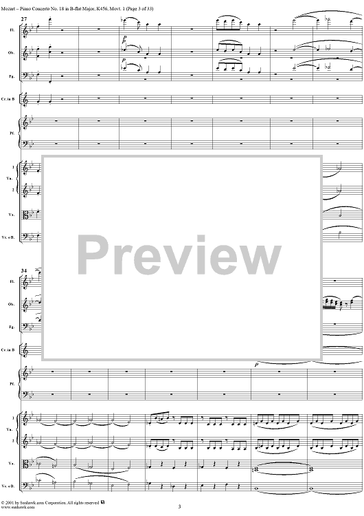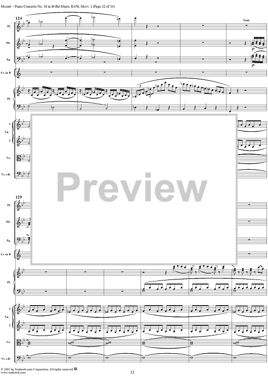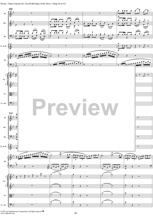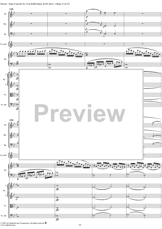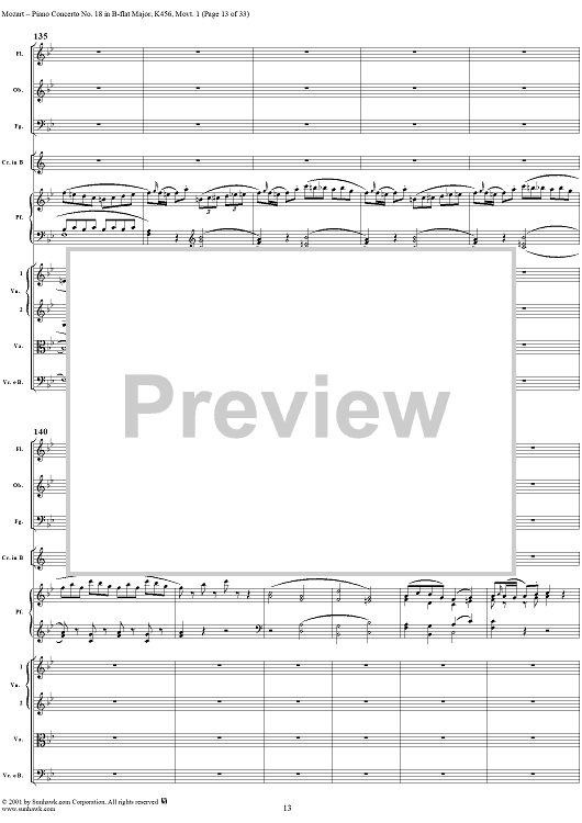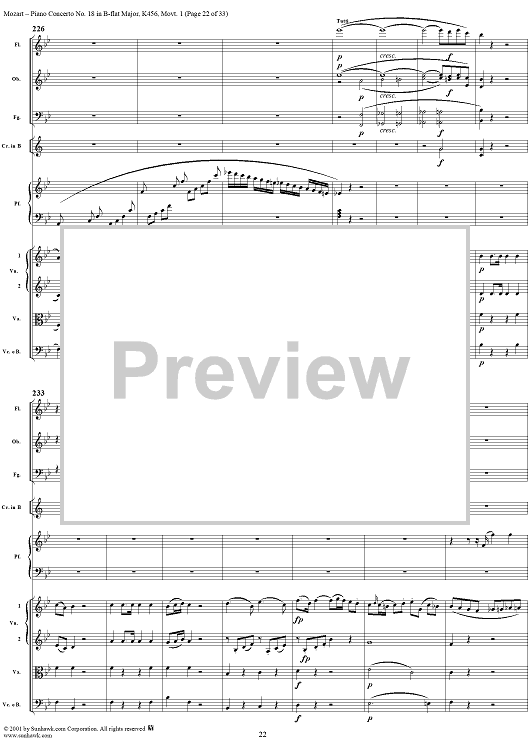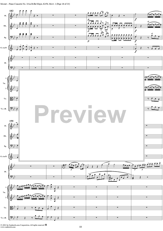 Digital Sheet Music for Piano Concerto No. 18 in B-flat Major, Movement 1 (K456) - Full Score by Wolfgang Amadeus Mozart scored for Piano and Orchestra; id:250316