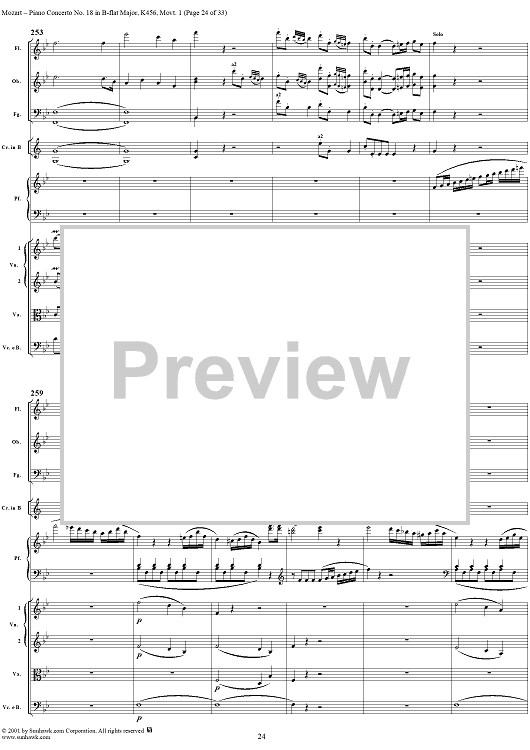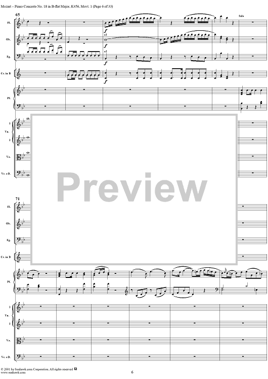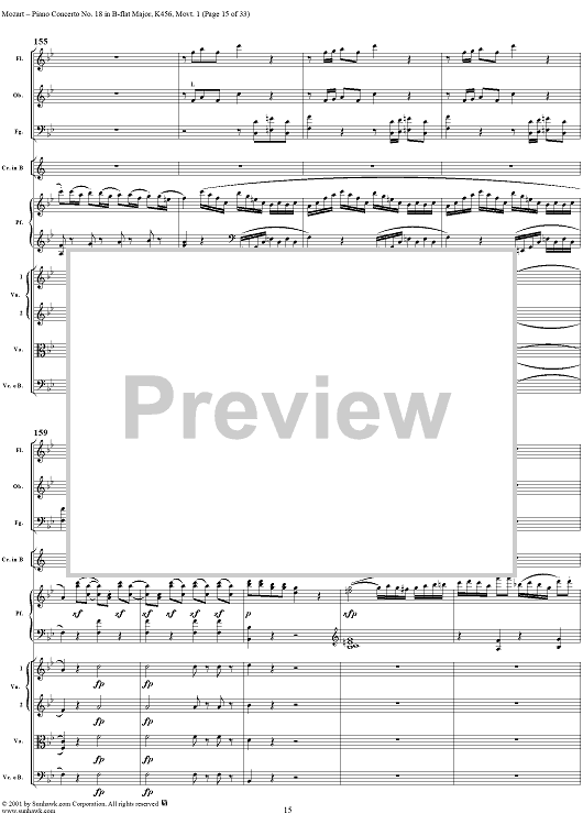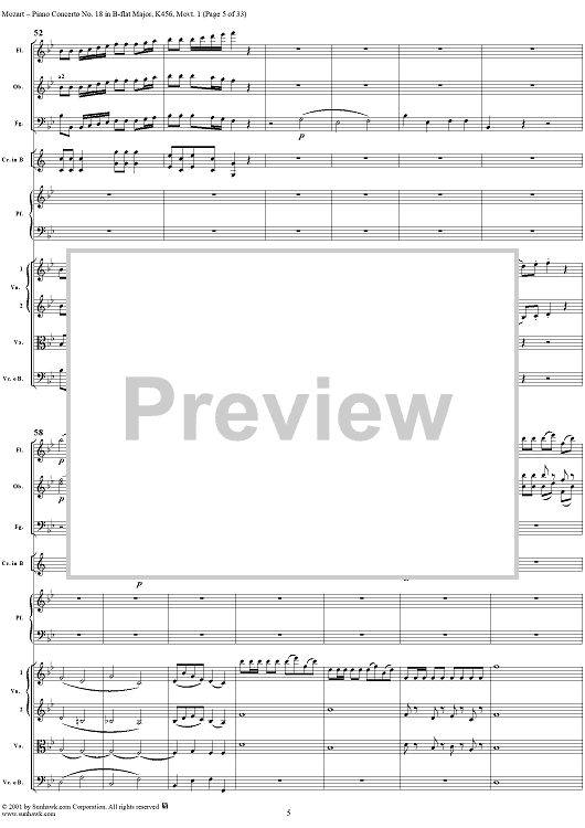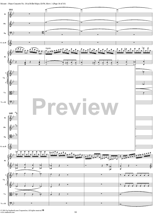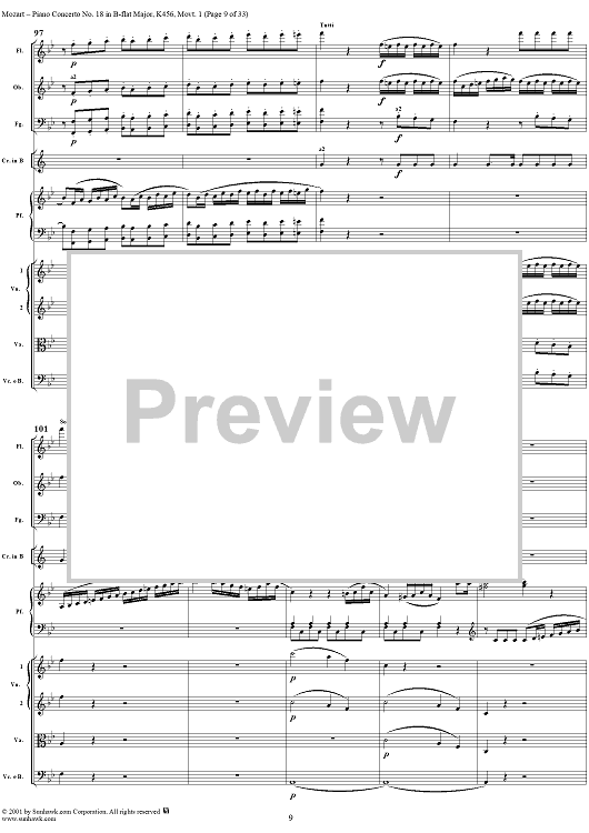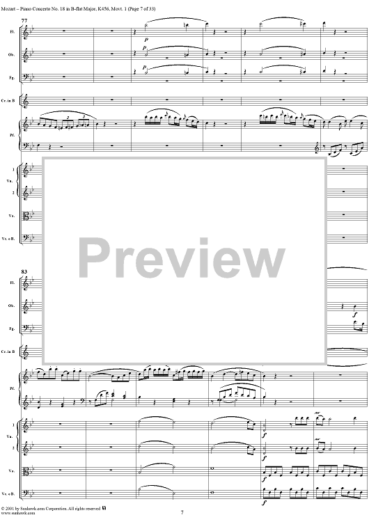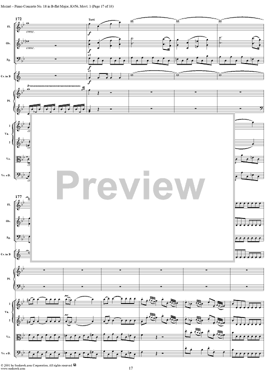Digital Sheet Music for Piano Concerto No. 18 in B-flat Major, Movement 1 (K456) - Full Score by Wolfgang Amadeus Mozart scored for Piano and Orchestra; id:250316