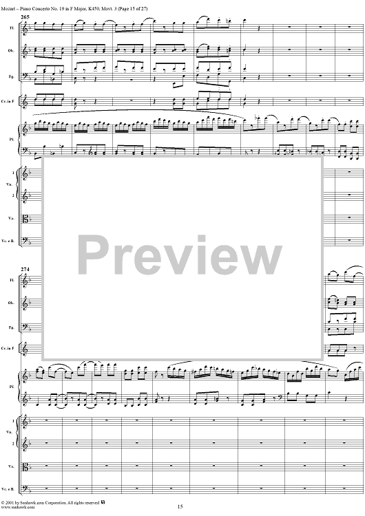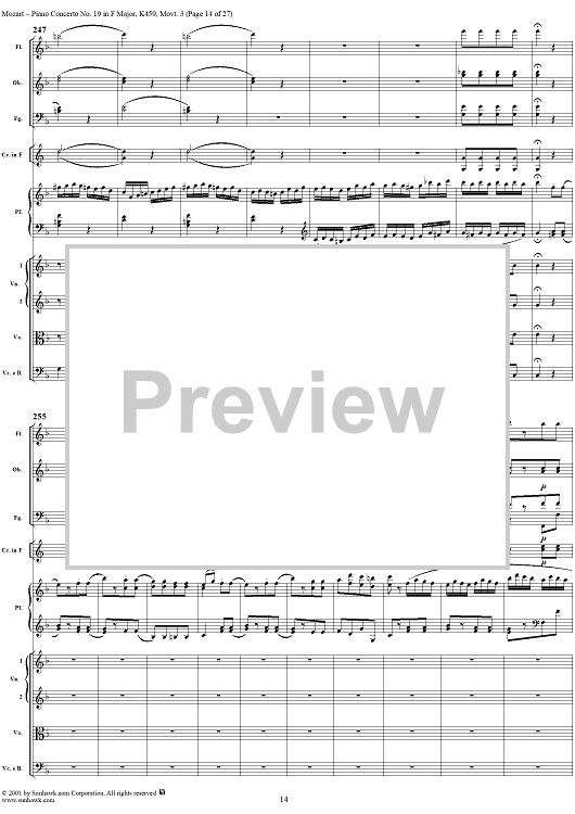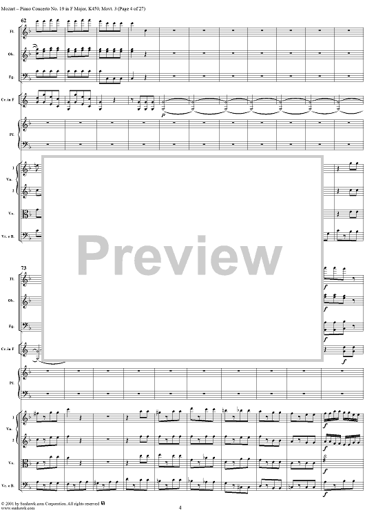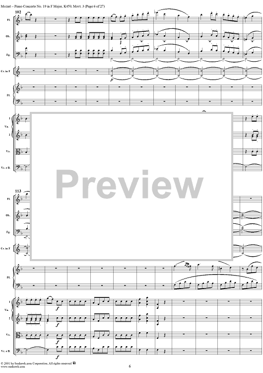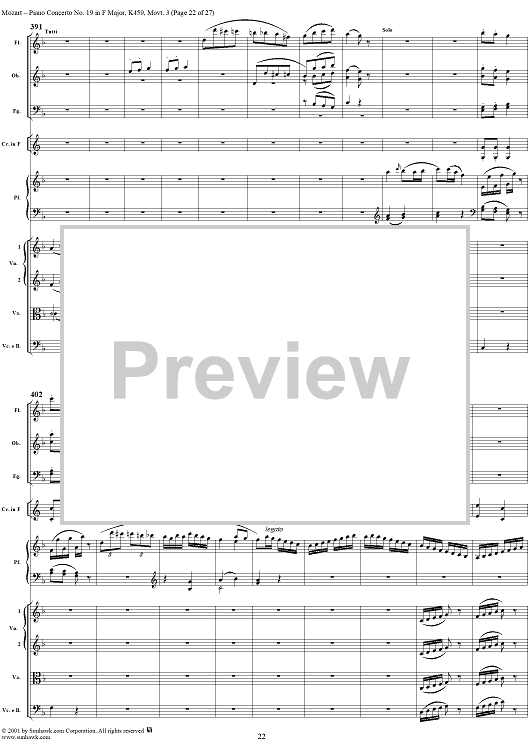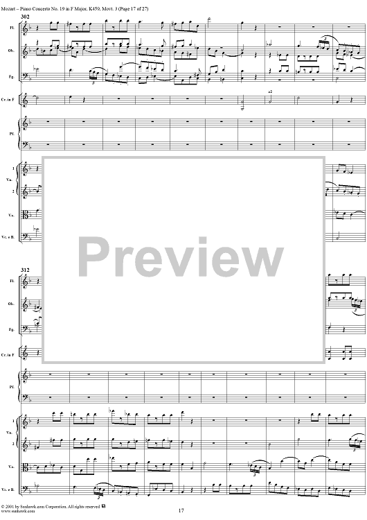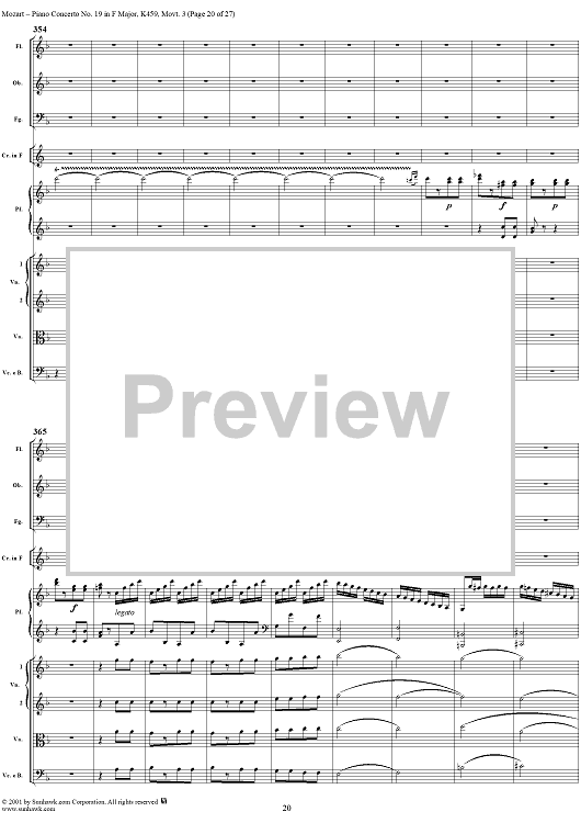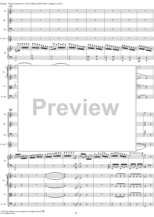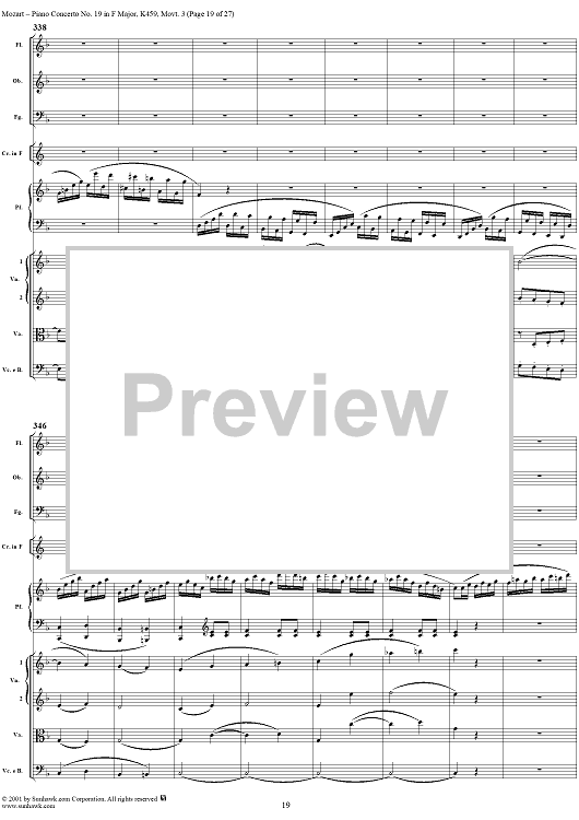 Digital Sheet Music for Piano Concerto No. 19 in F Major, Movement 3 (K459) - Full Score by Wolfgang Amadeus Mozart scored for Piano and Orchestra; id:253201