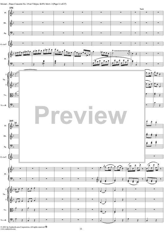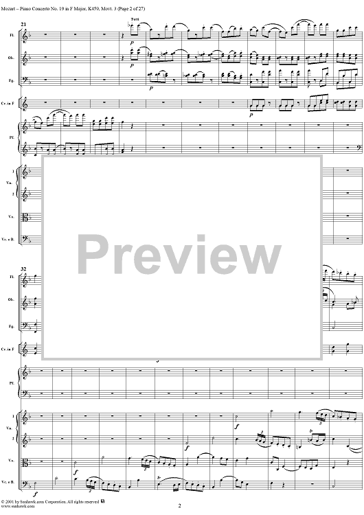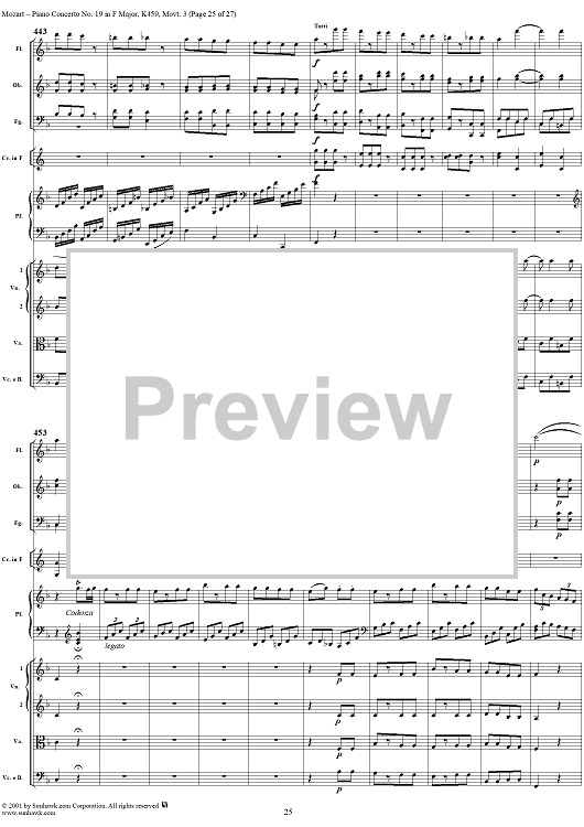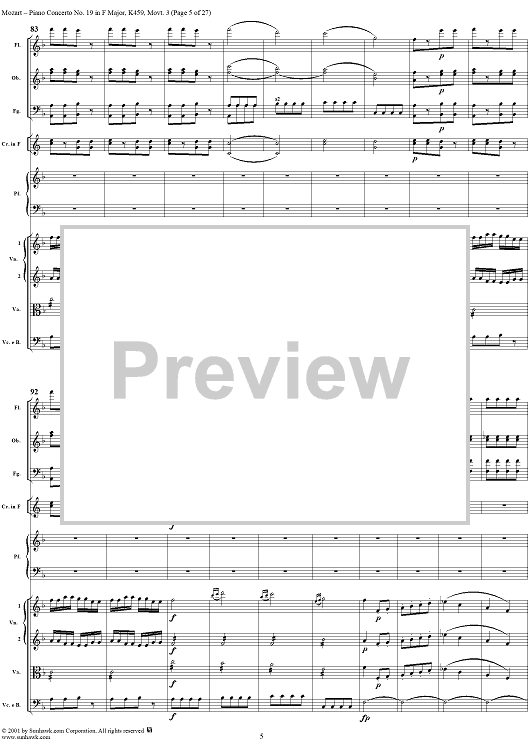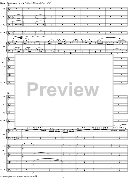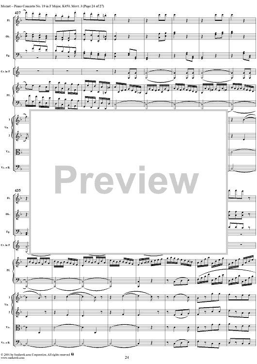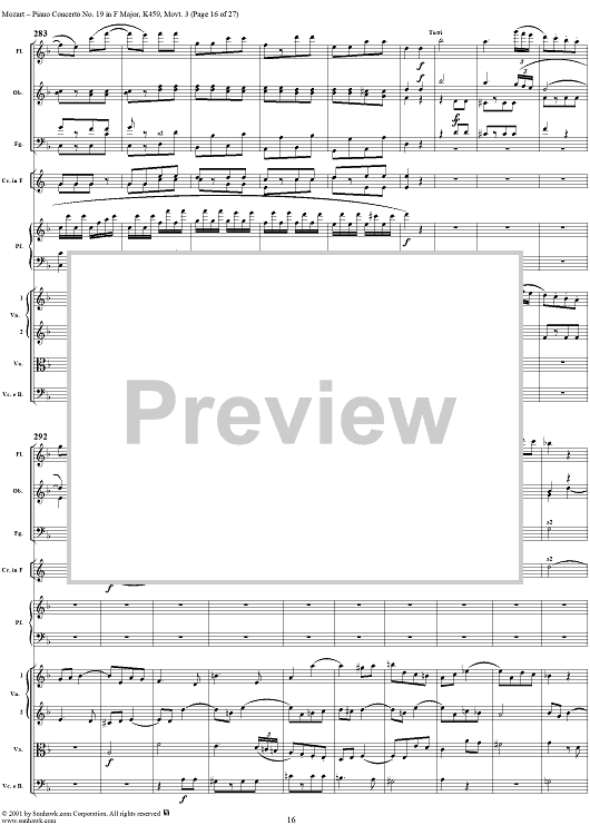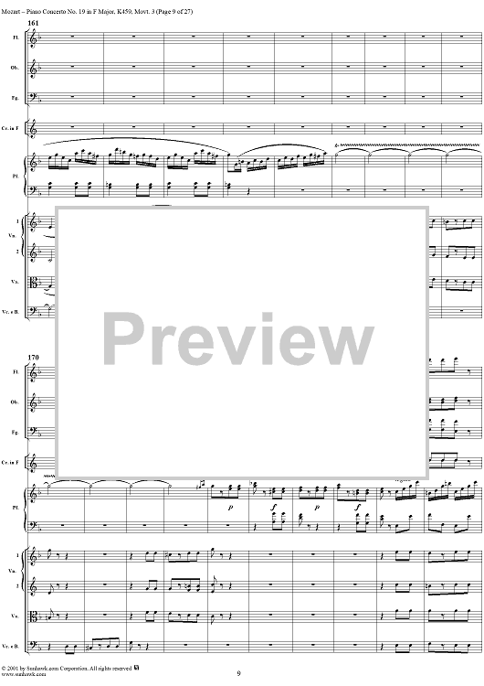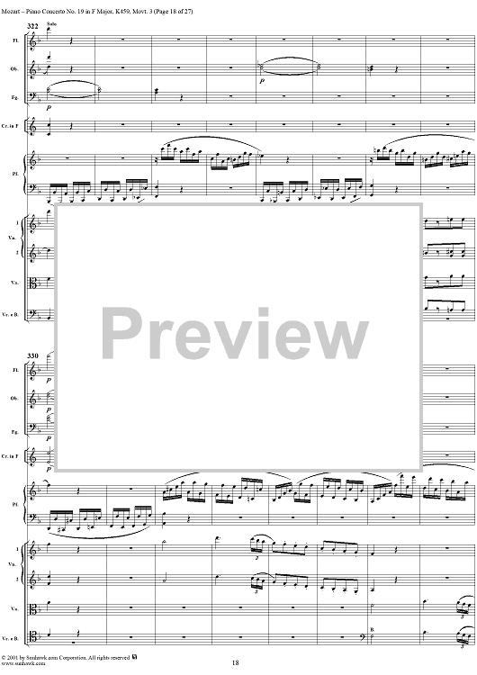 Digital Sheet Music for Piano Concerto No. 19 in F Major, Movement 3 (K459) - Full Score by Wolfgang Amadeus Mozart scored for Piano and Orchestra; id:253201