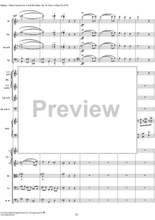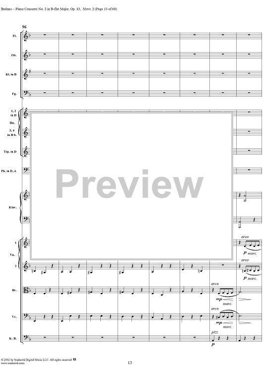 Digital Sheet Music for Piano Concerto No. 2, Movement 2 - Full Score by Johannes Brahms scored for Piano and Orchestra; id:285222