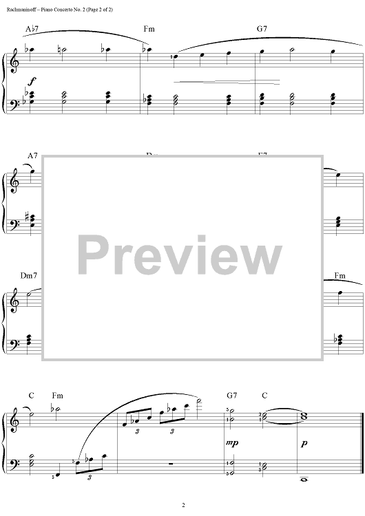 Digital Sheet Music for Piano Concerto No. 2 by Richard Bradley, Sergei Rachmaninoff scored for Easy Piano; id:292924