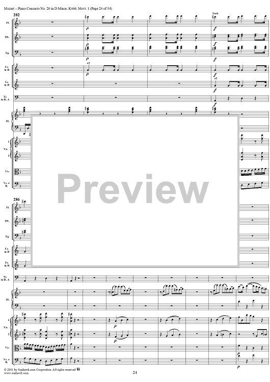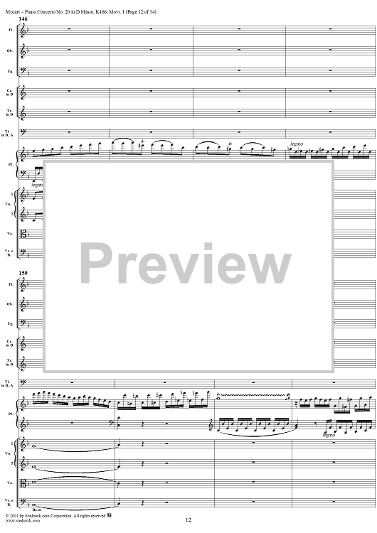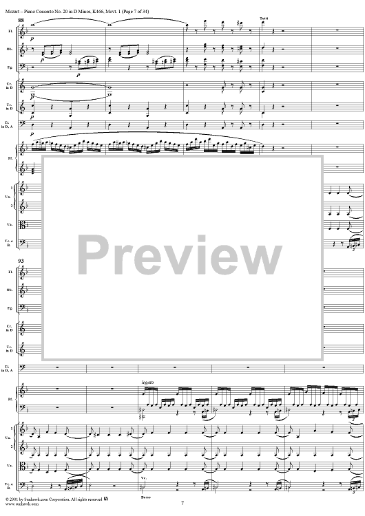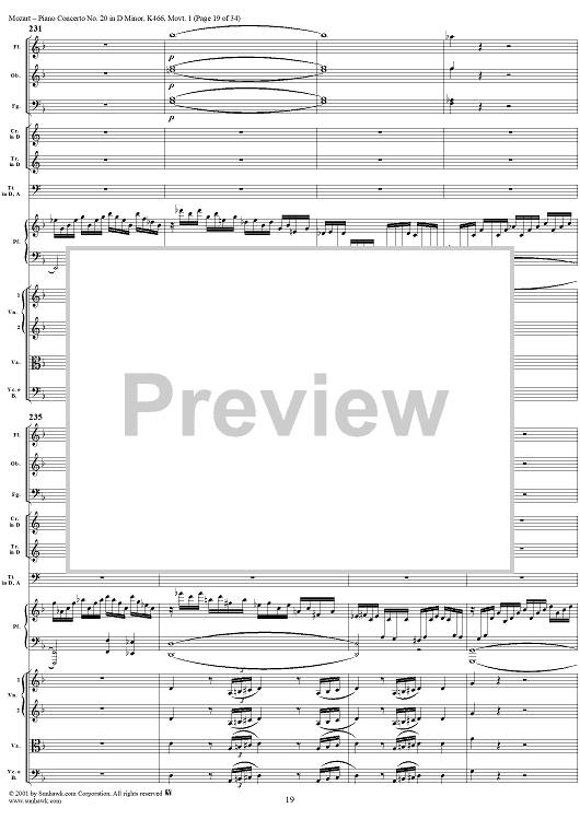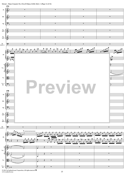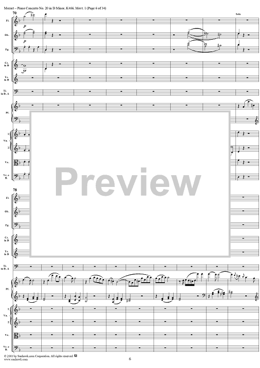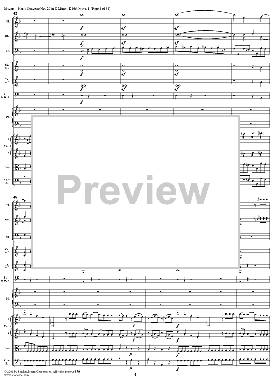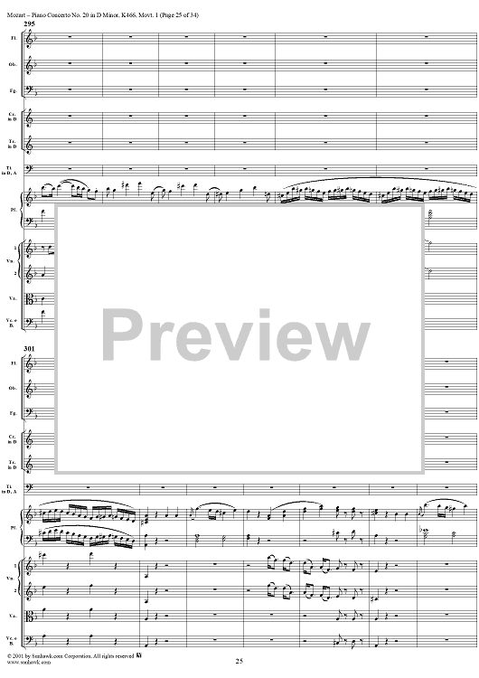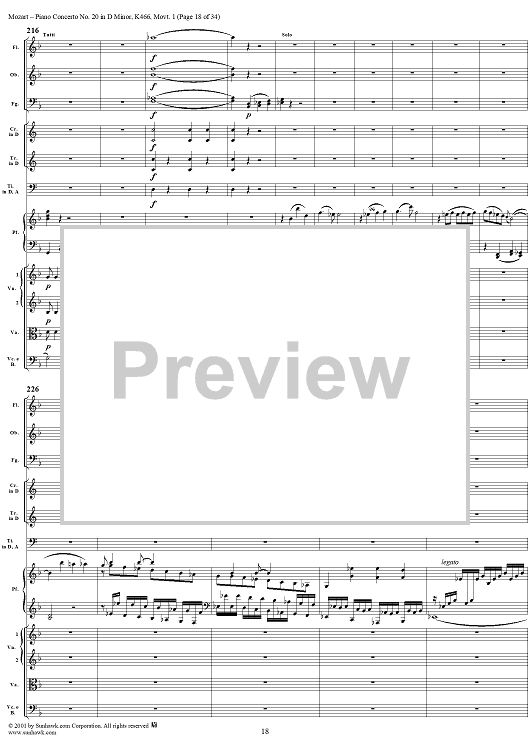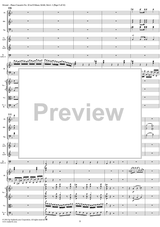 Digital Sheet Music for Piano Concerto No. 20 in D Minor, Movement 1 (K466) - Full Score by Wolfgang Amadeus Mozart scored for Piano and Orchestra; id:250377