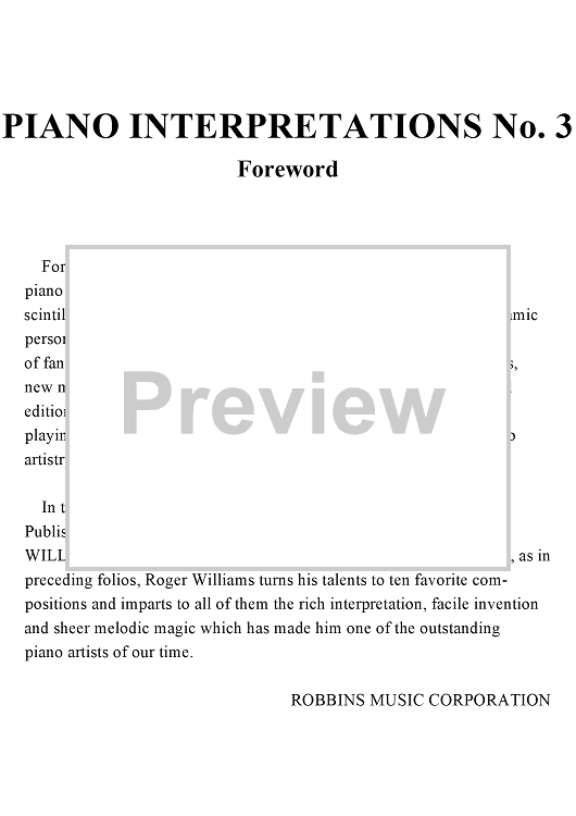 Digital Sheet Music for Piano Interpretations No. 3 - Foreword by Roger Williams scored for Piano Solo; id:321615