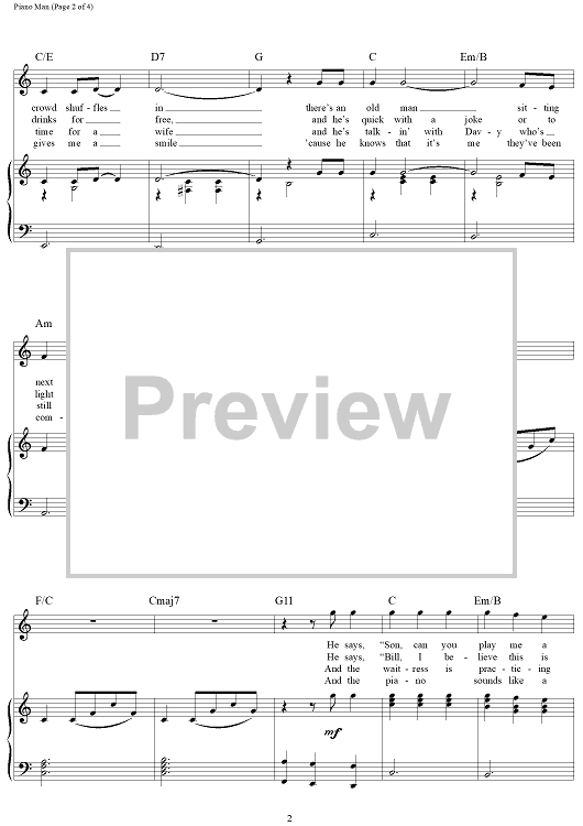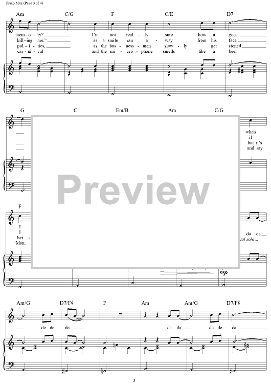 Digital Sheet Music for Piano Man by Billy Joel scored for Piano/Vocal/Chords; id:365250