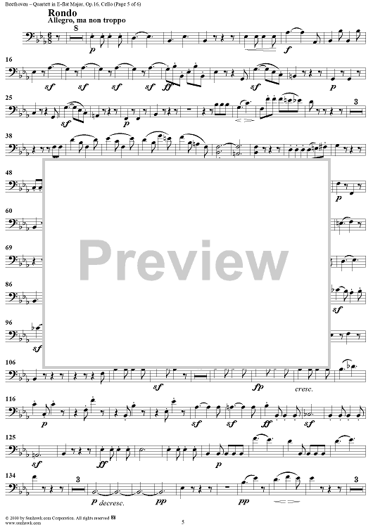 Digital Sheet Music for Piano Quartet in E-flat Major, Op. 16 - Cello by Ludwig van Beethoven scored for Piano Quartet; id:275806