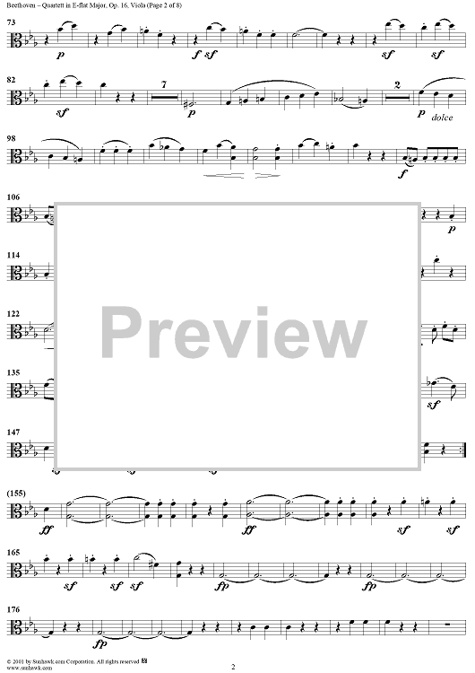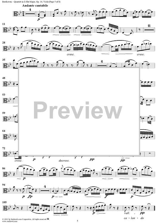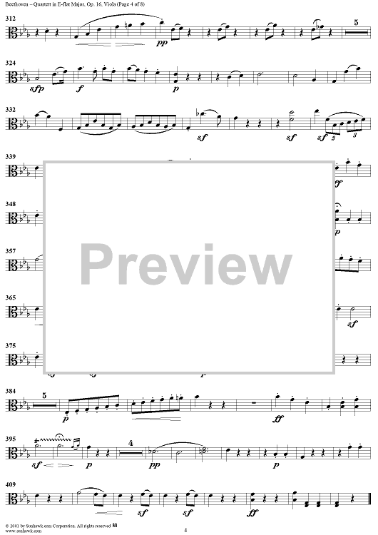 Digital Sheet Music for Piano Quartet in E-flat Major, Op. 16 - Viola by Ludwig van Beethoven scored for Piano Quartet; id:275807