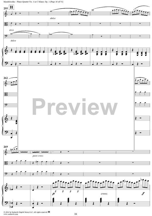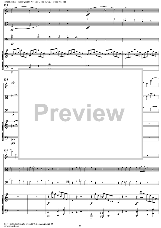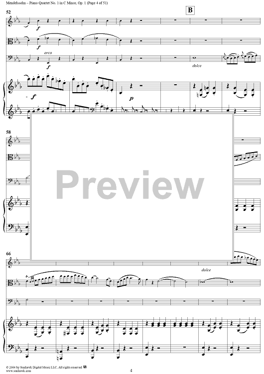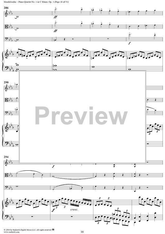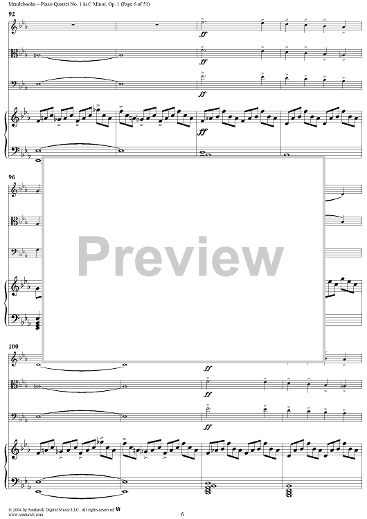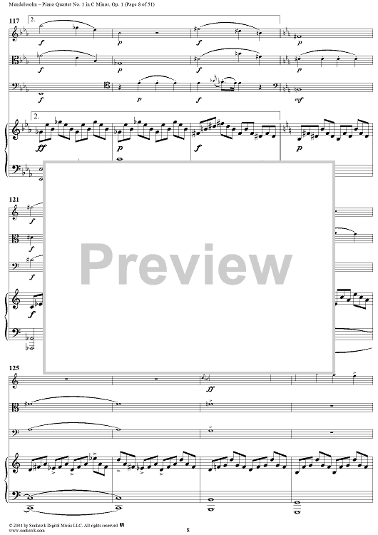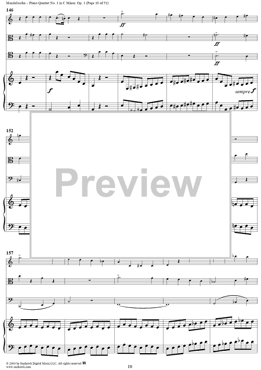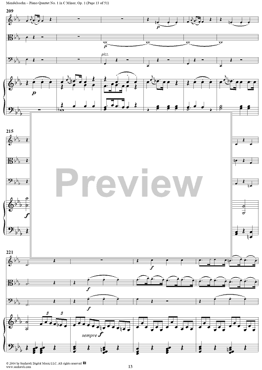 Digital Sheet Music for Piano Quartet No. 1 in C Minor, Op. 1 - Piano/Score by Felix Mendelssohn scored for Piano Quartet; id:303013