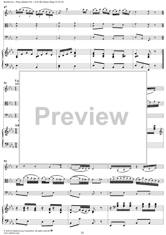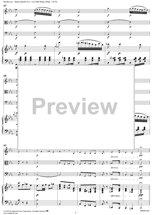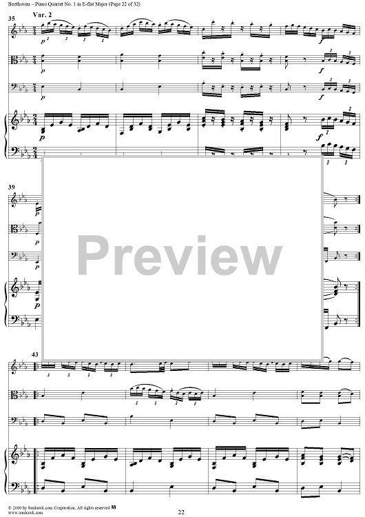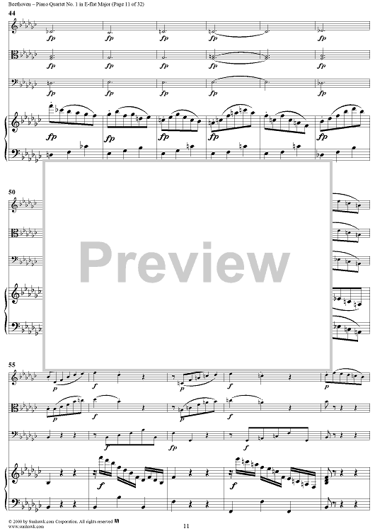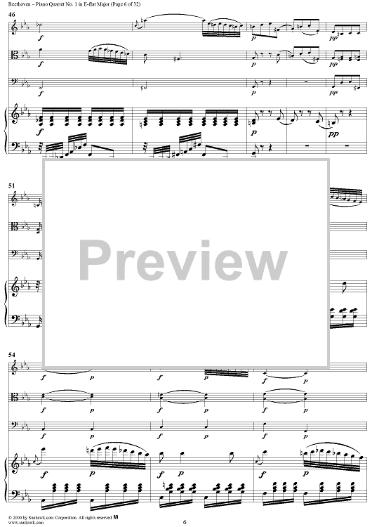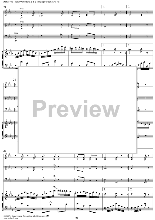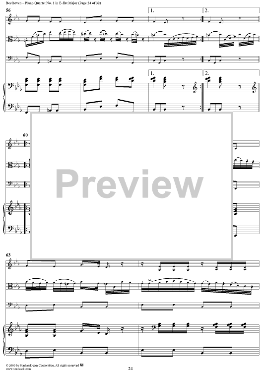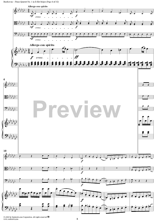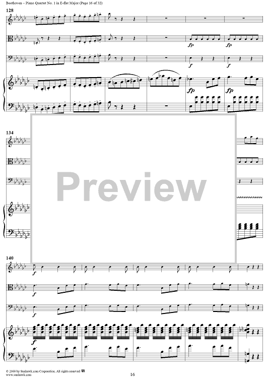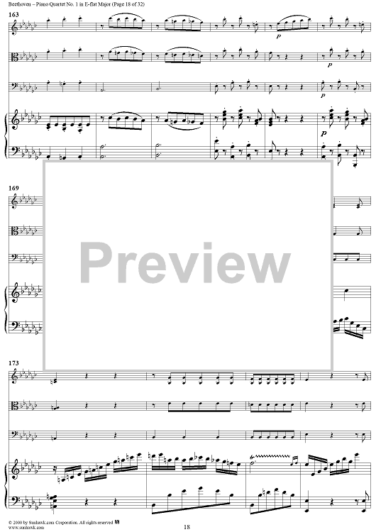 Digital Sheet Music for Piano Quartet No. 1 in E-flat Major, WoO 36 - Full Score by Ludwig van Beethoven scored for Piano Quartet; id:262400
