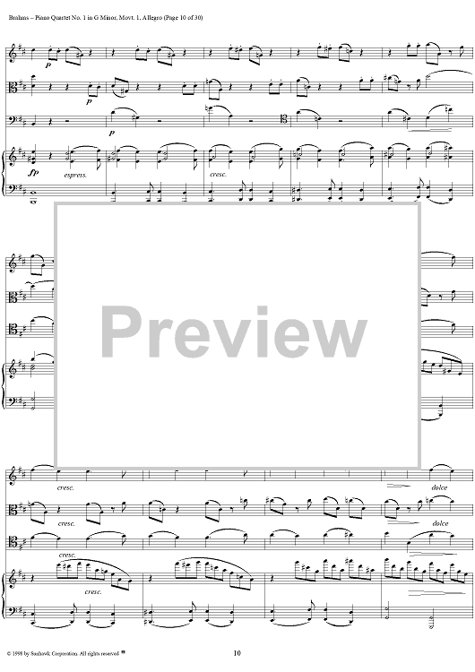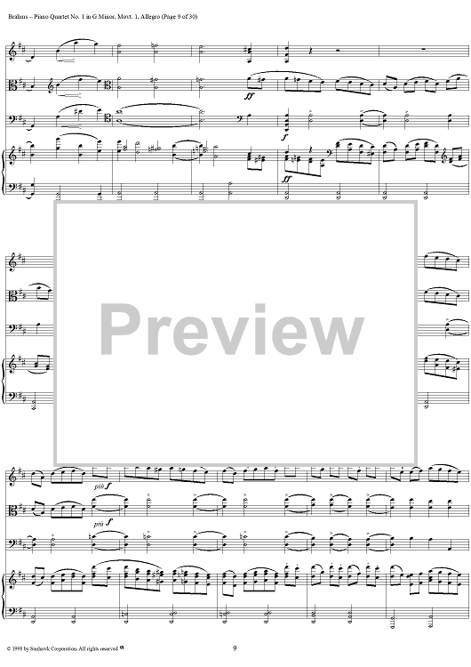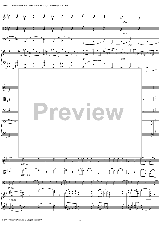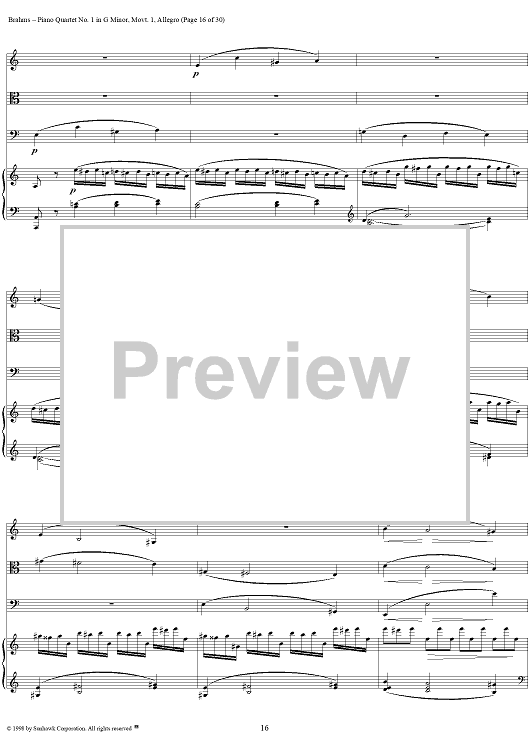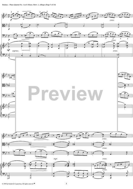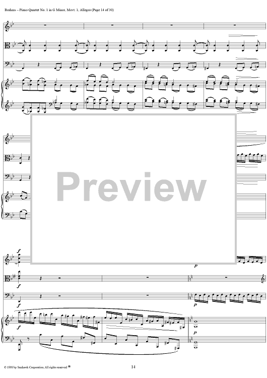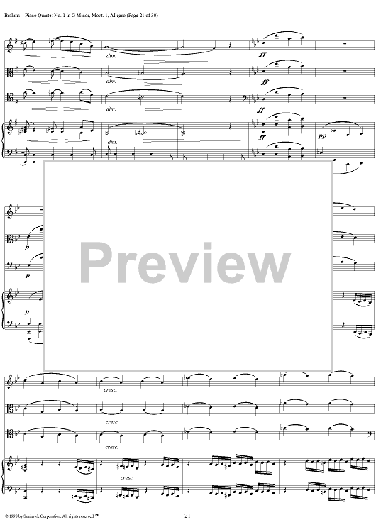 "Piano Quartet no. 1 in G minor, op. 25: Movement 1" Sheet Music by Johannes Brahms
