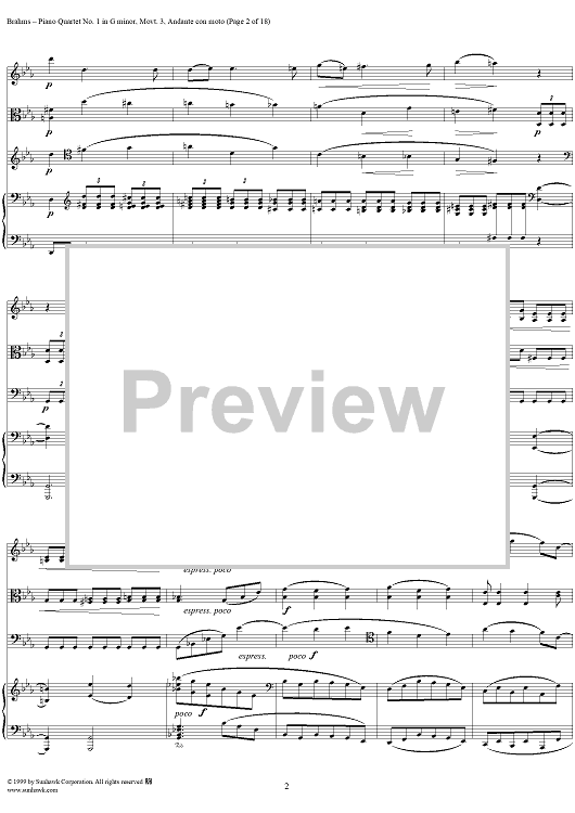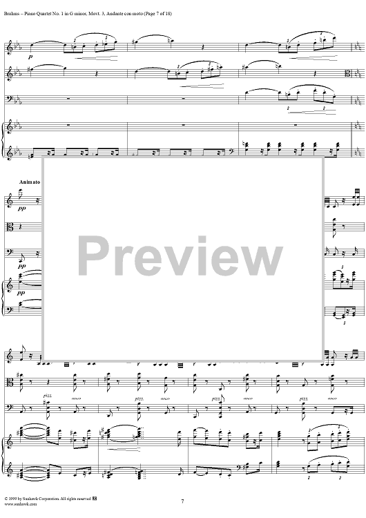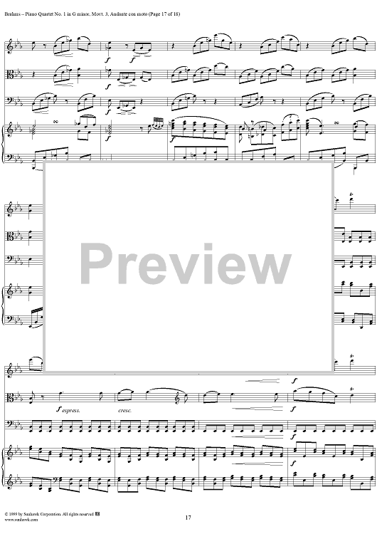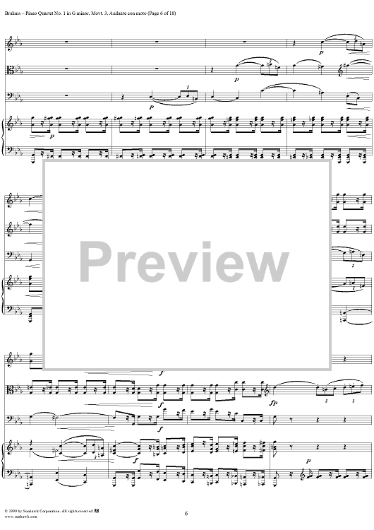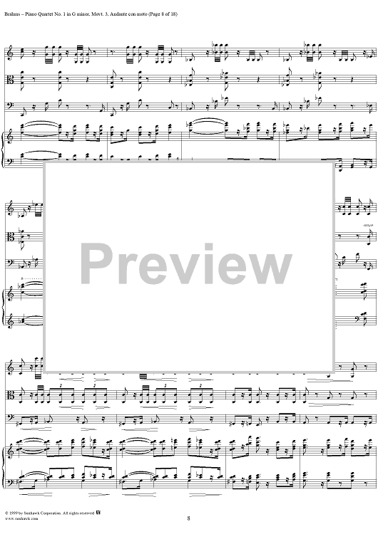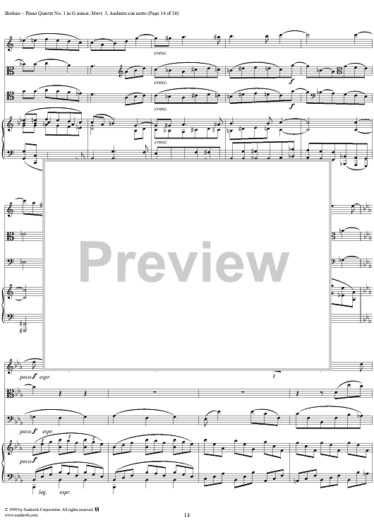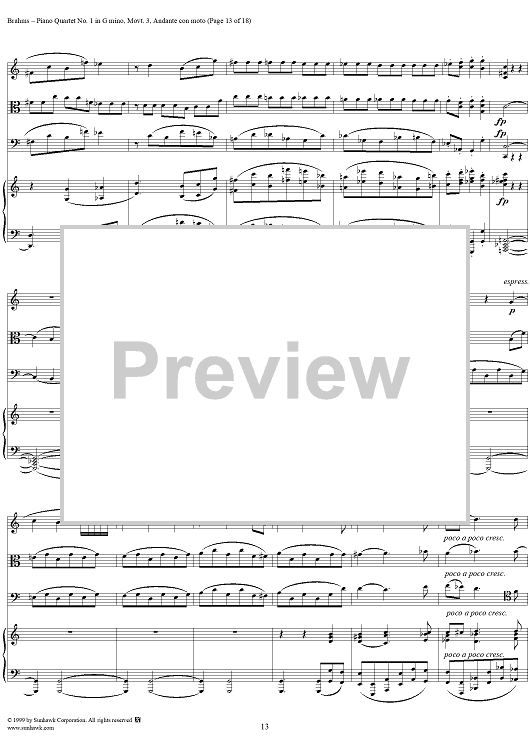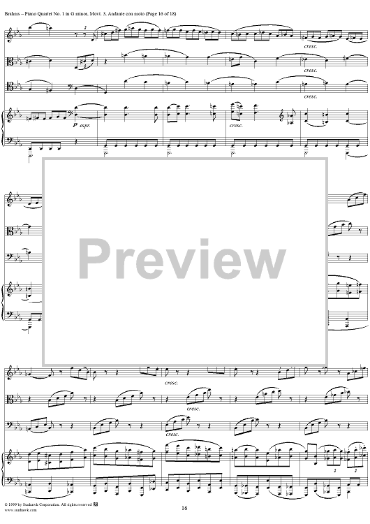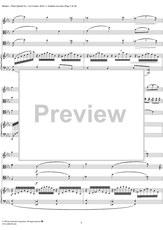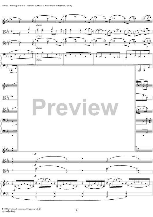 Digital Sheet Music for Piano Quartet no. 1 in G minor, op. 25: Movement 3 by Johannes Brahms scored for Piano Quartet; id:118446