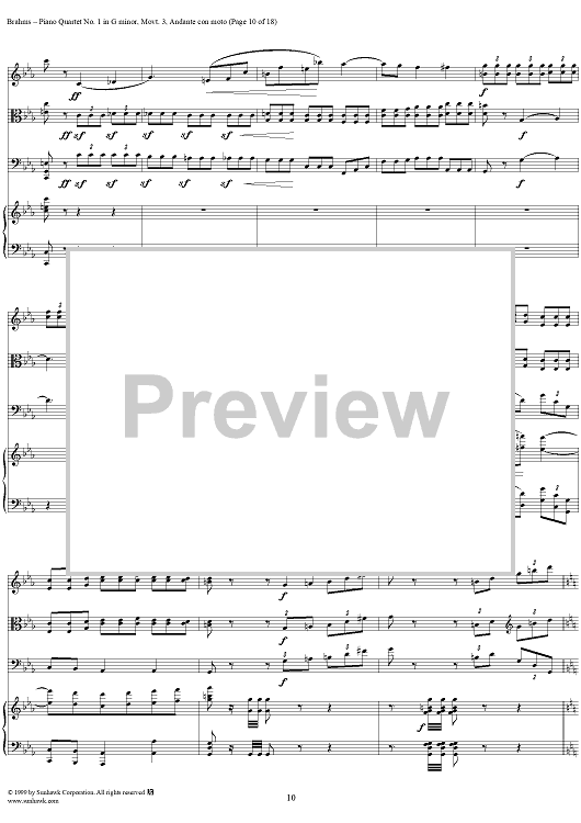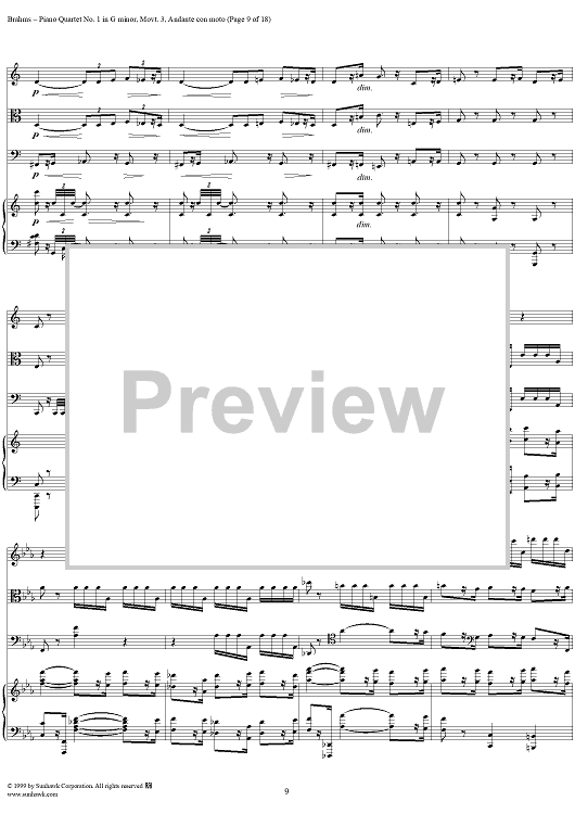 "Piano Quartet no. 1 in G minor, op. 25: Movement 3" Sheet Music by Johannes Brahms