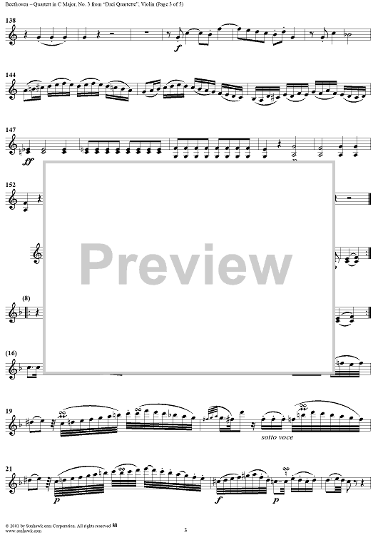 Digital Sheet Music for Piano Quartet No. 3 in C Major, WoO 36 - Violin by Ludwig van Beethoven scored for Piano Quartet; id:275700