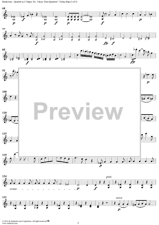 "Piano Quartet No. 3 in C Major, WoO 36 - Violin" Sheet Music by Ludwig van Beethoven