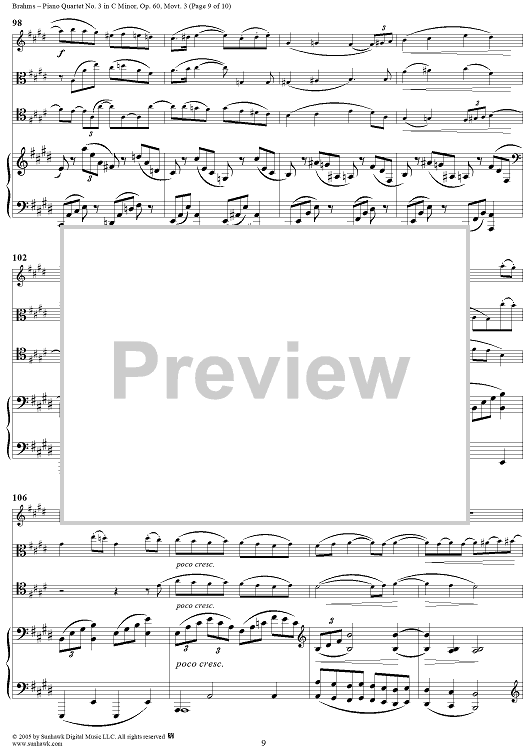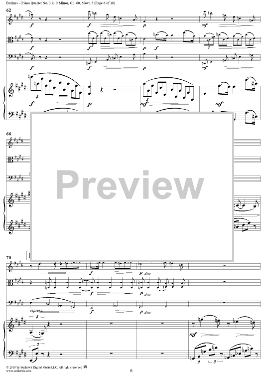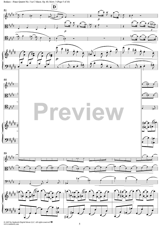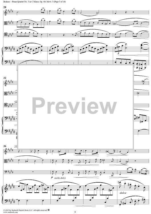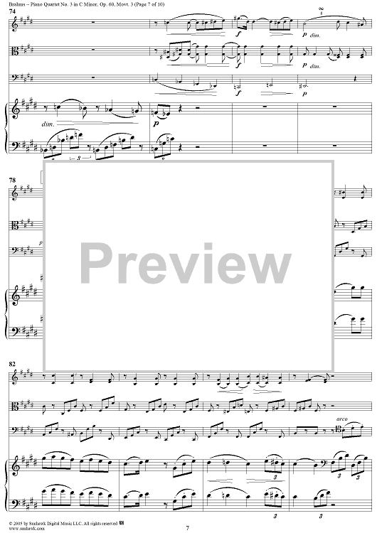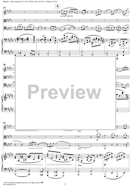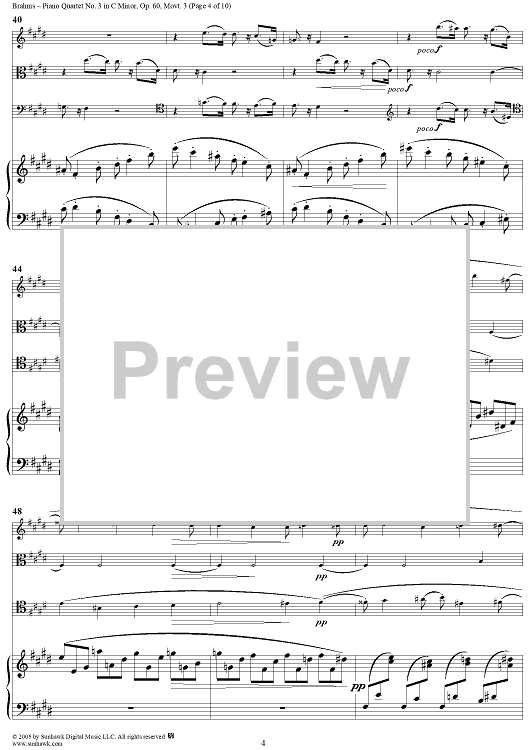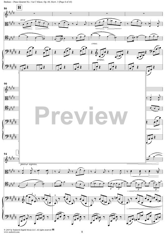 Digital Sheet Music for Piano Quartet No. 3 in C Minor, Movement 3 - Piano Score by , Johannes Brahms scored for Piano Quartet; id:303487