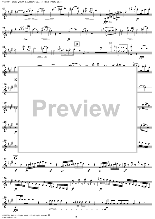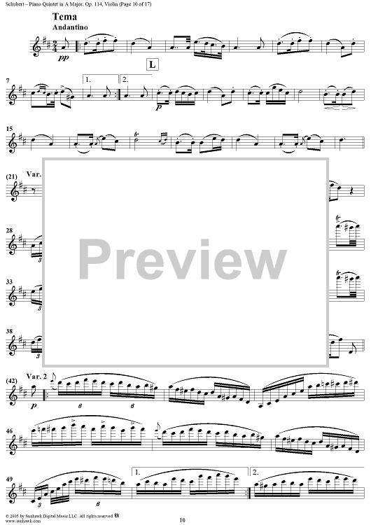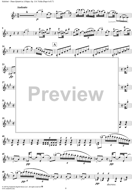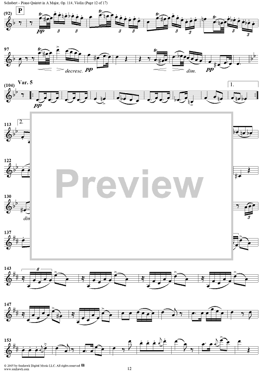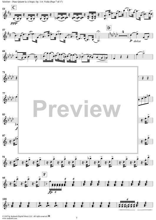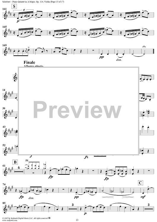 Digital Sheet Music for Piano Quintet in A Major - Violin by Franz Schubert scored for Piano Quintet; id:311372