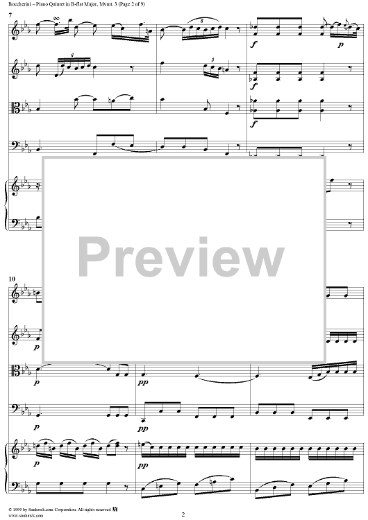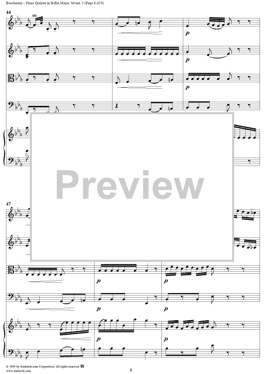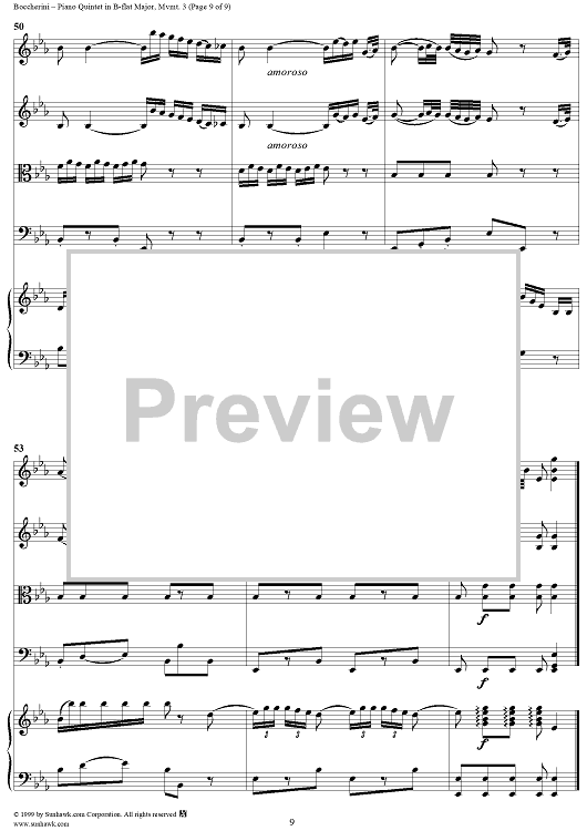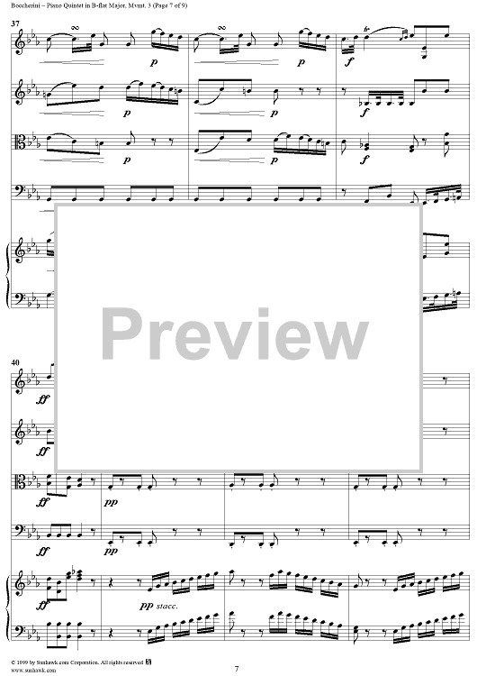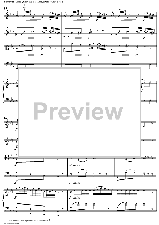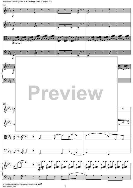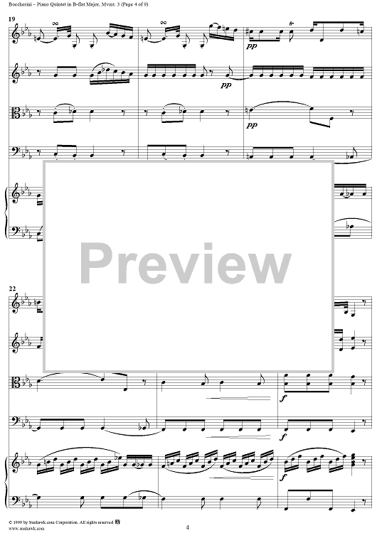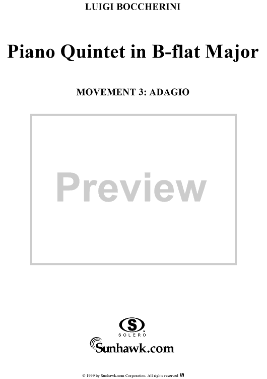 Digital Sheet Music for Piano Quintet in B-flat Major, Movement 3 - Piano Score by Luigi Boccherini scored for Piano Quintet; id:275015