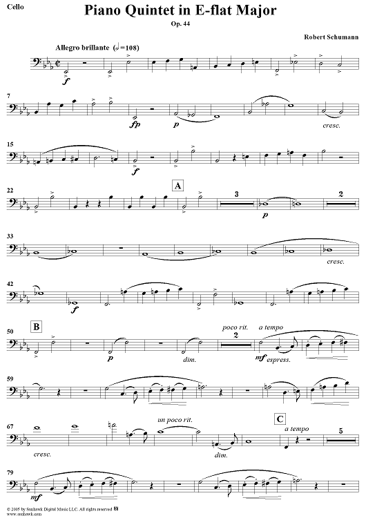 "Piano Quintet in E-flat Major - Cello" Sheet Music by Robert Schumann