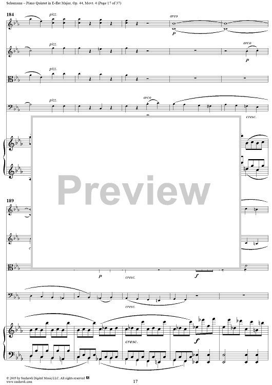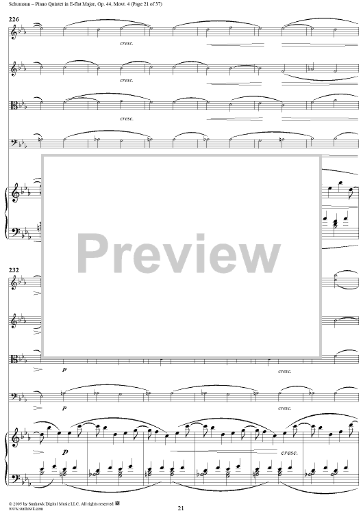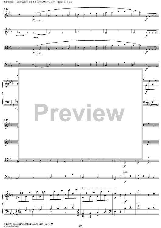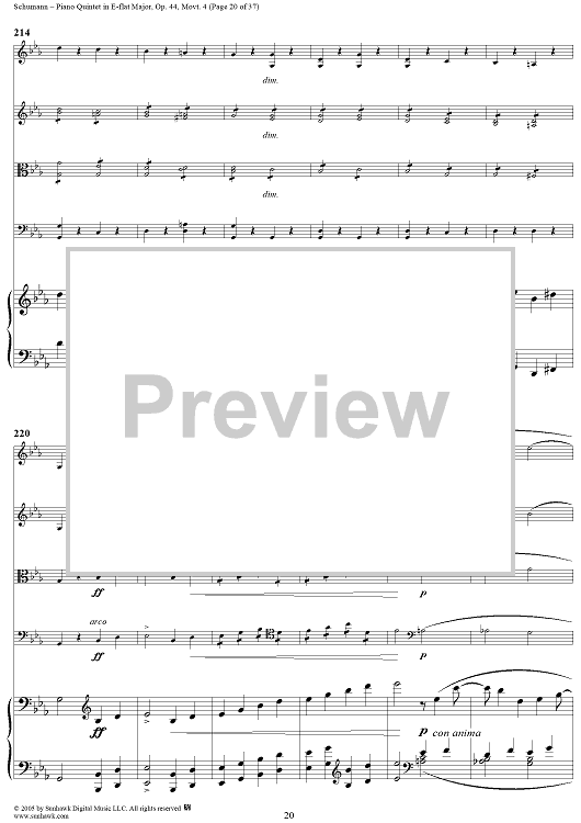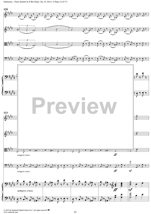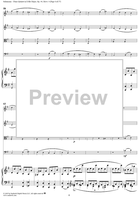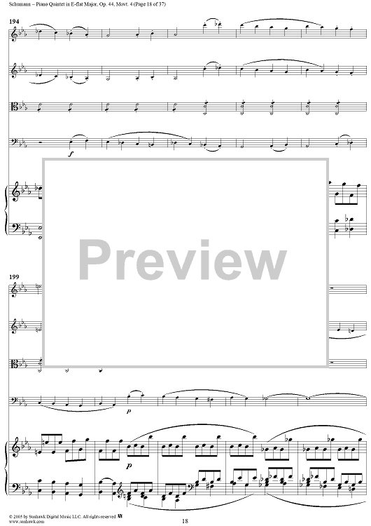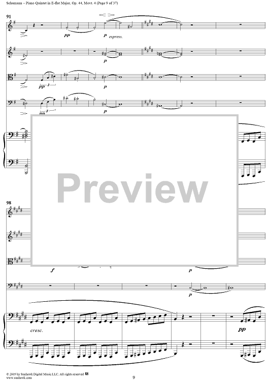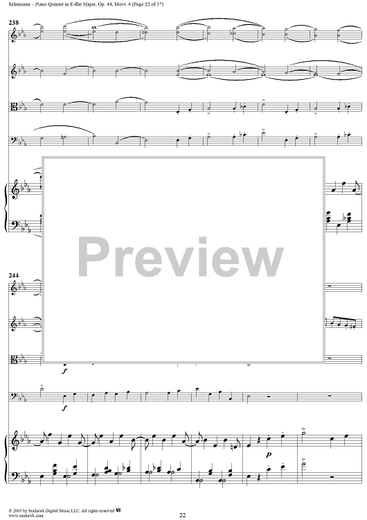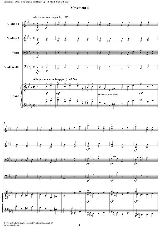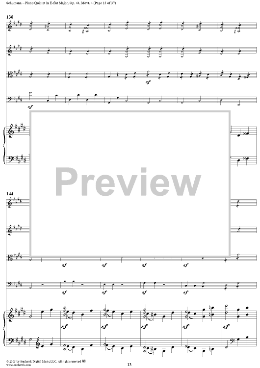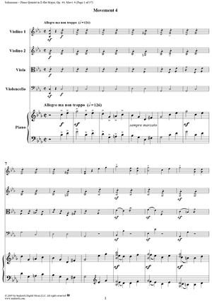 "Piano Quintet in E-flat Major, Movt. 4 - Piano Score" Sheet Music by Robert Schumann
