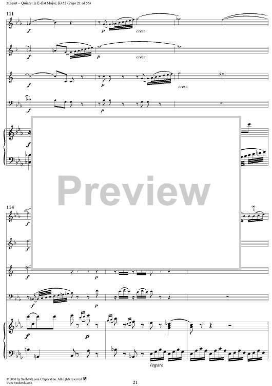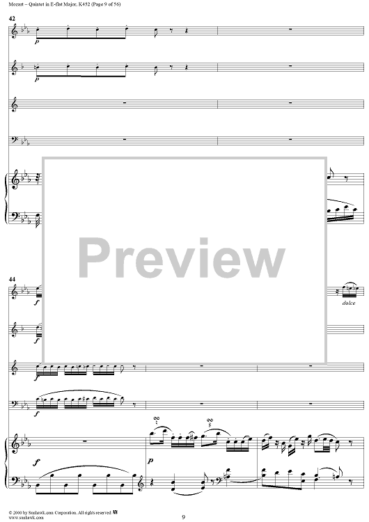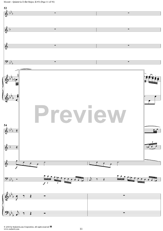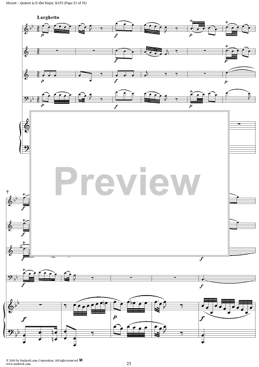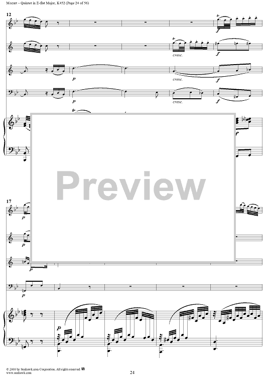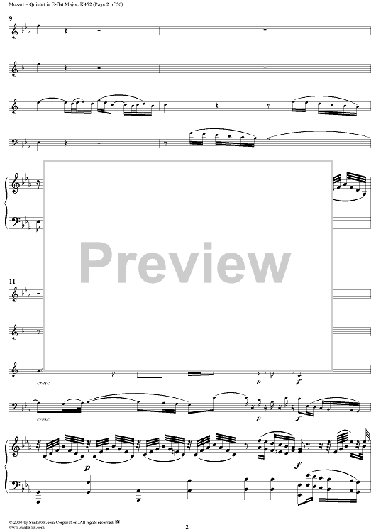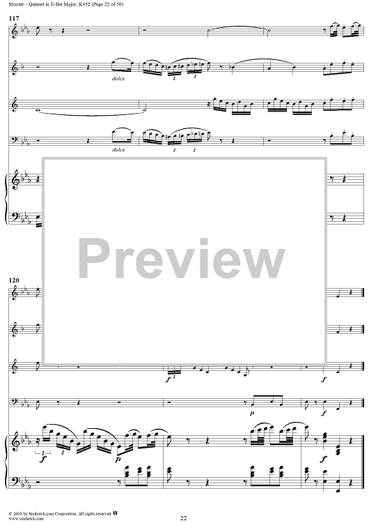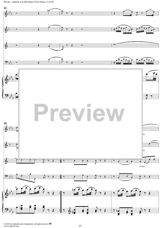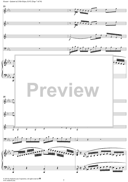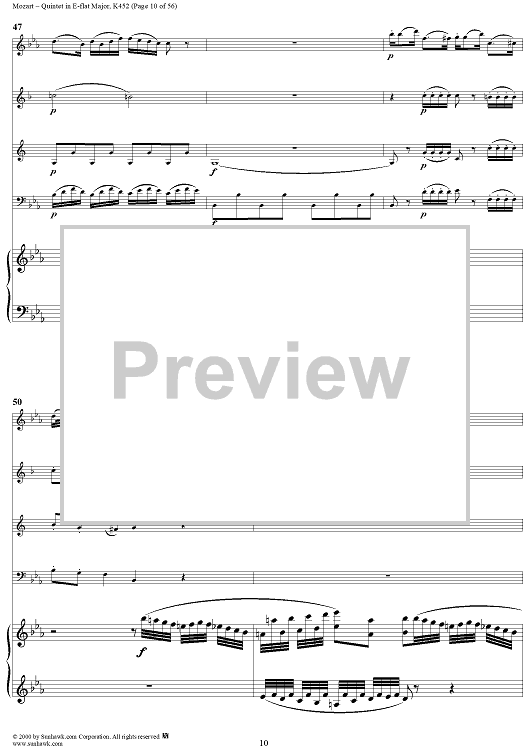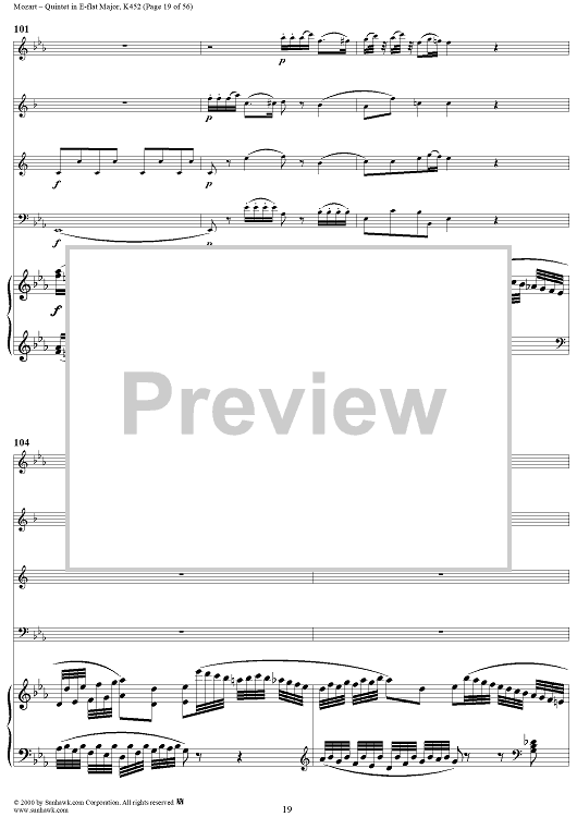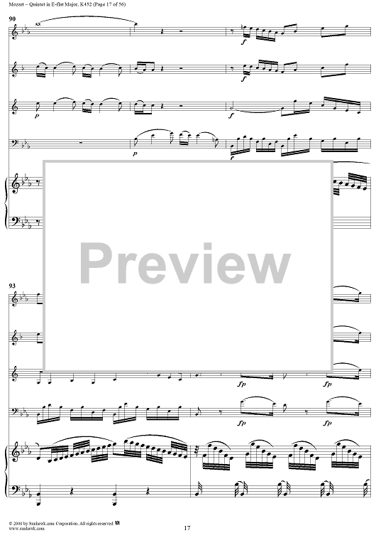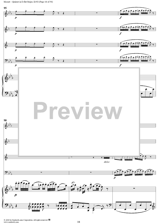 Digital Sheet Music for Piano Quintet in E-flat Major - Piano Score by Wolfgang Amadeus Mozart scored for Oboe/Clarinet/Horn/Bassoon/Piano; id:253100