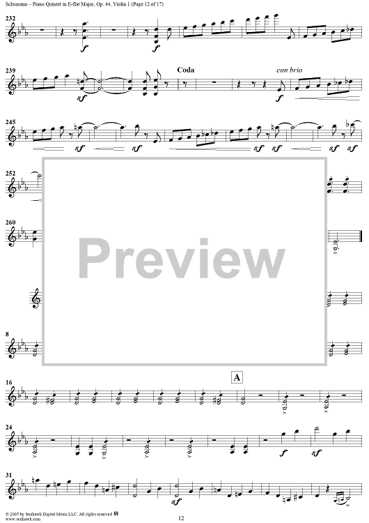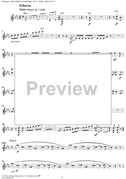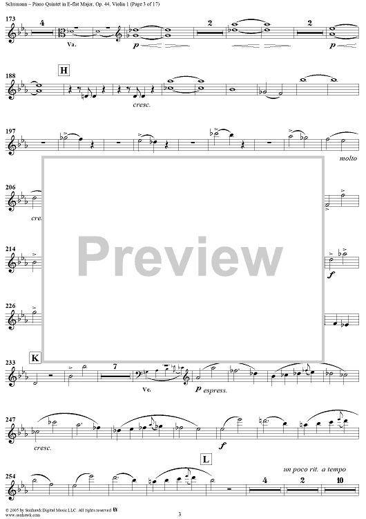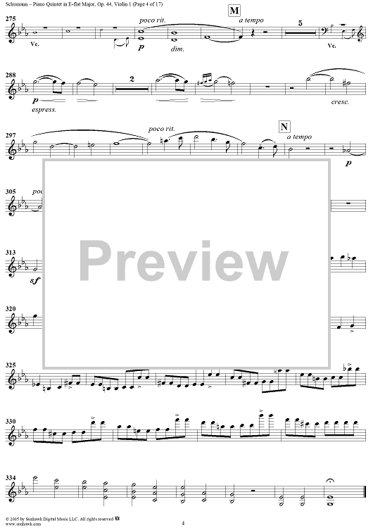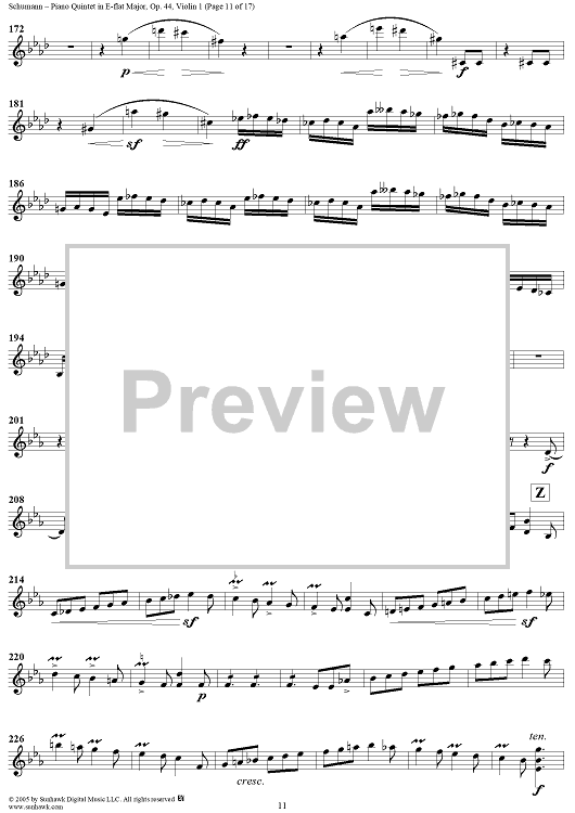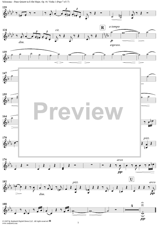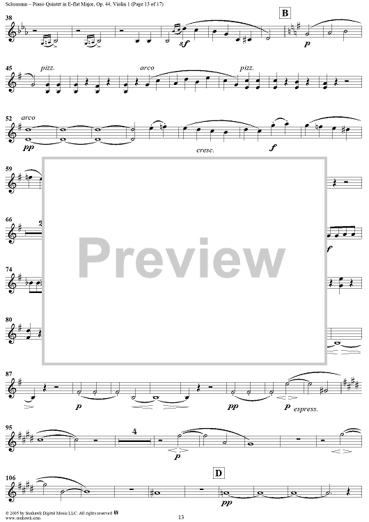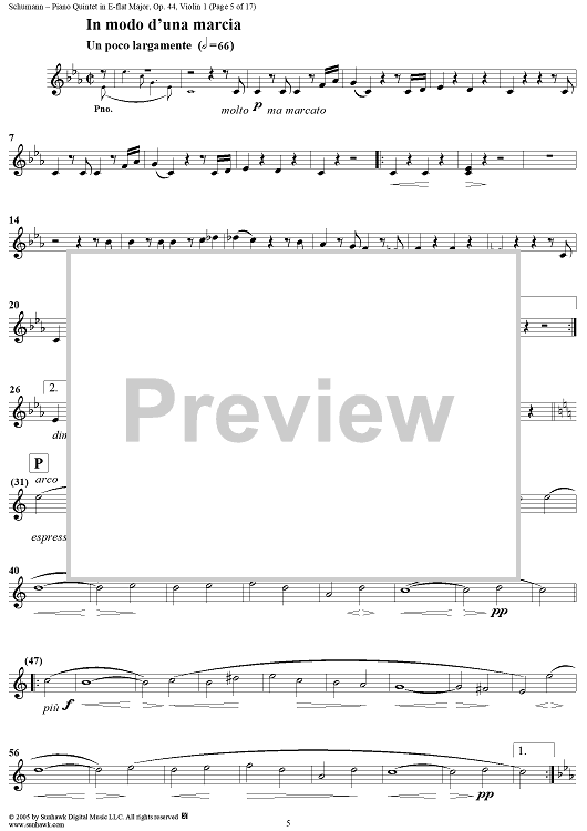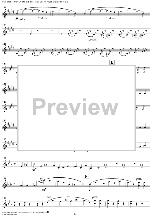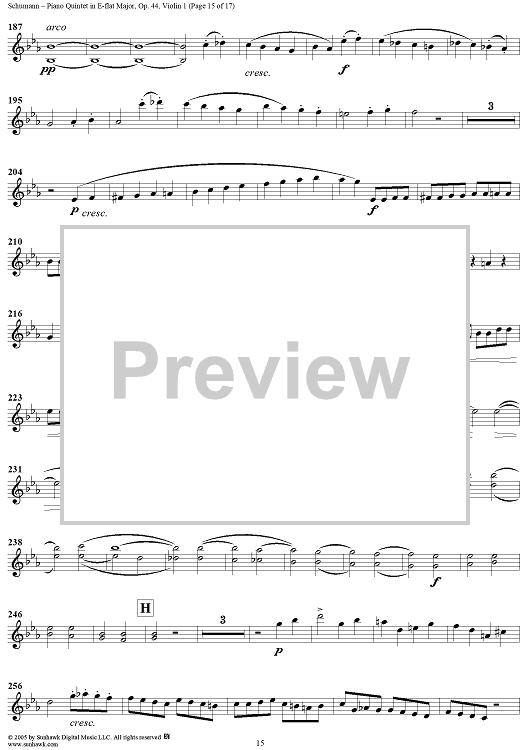 "Piano Quintet in E-flat Major - Violin 1" Sheet Music by Robert Schumann