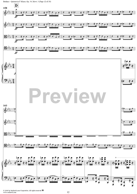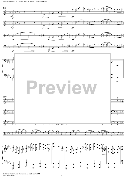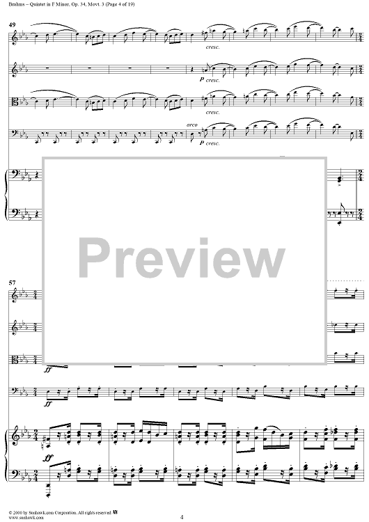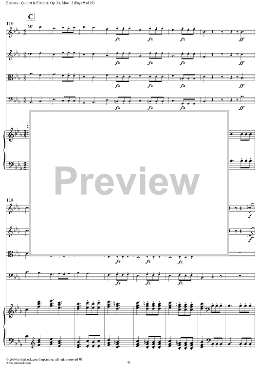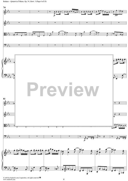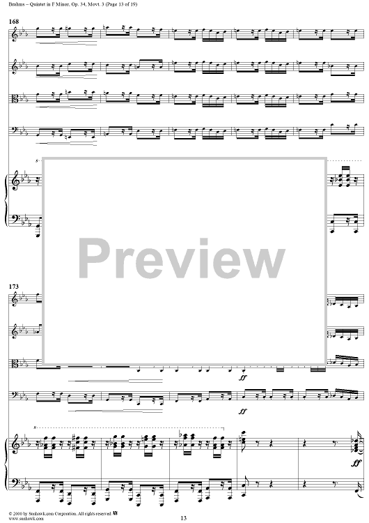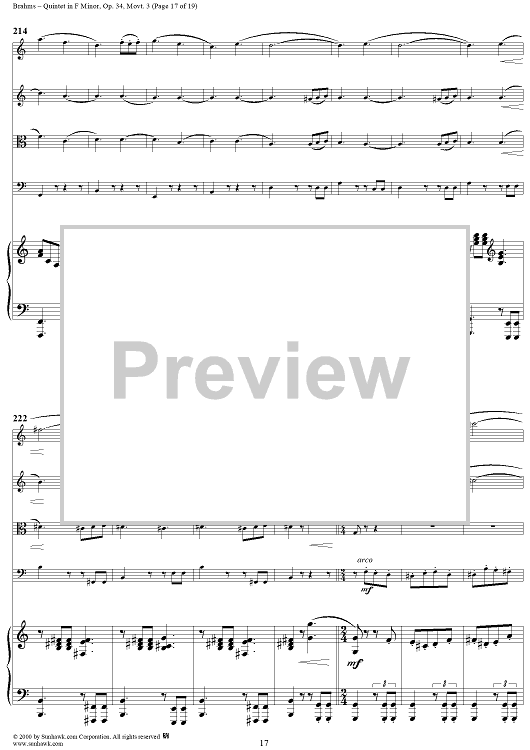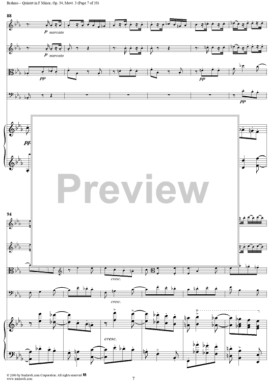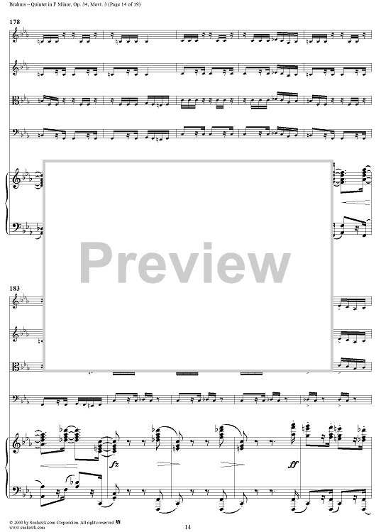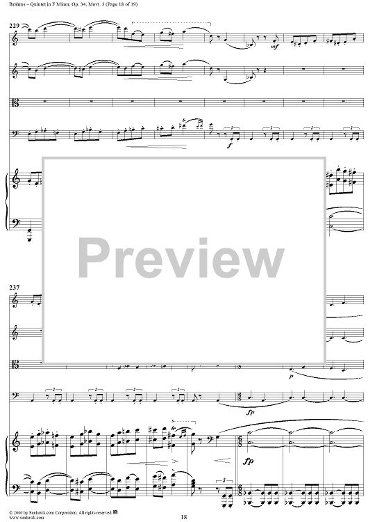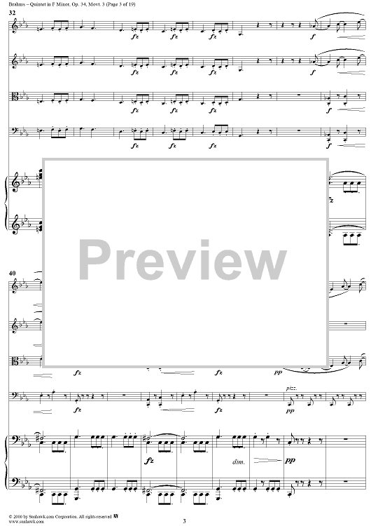 Digital Sheet Music for Piano Quintet, Op. 34a, Movement 3 - Piano Score by Johannes Brahms scored for Piano Quintet; id:274813
