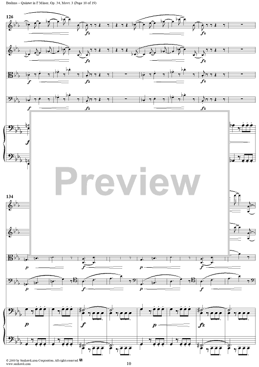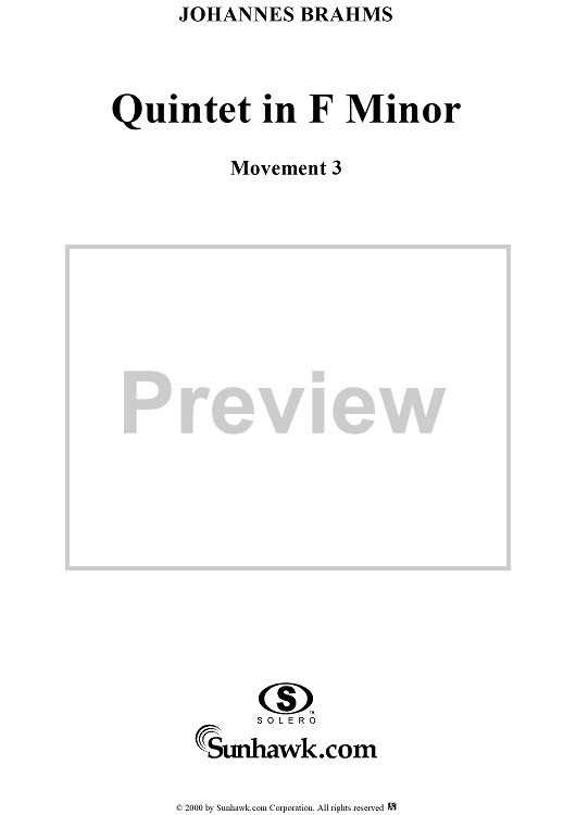 "Piano Quintet, Op. 34a, Movement 3 - Piano Score" Sheet Music by Johannes Brahms