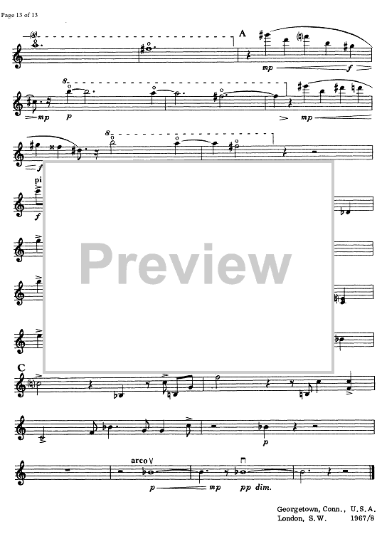 Digital Sheet Music for Piano Quintet - Violin 1 by , Malcolm Williamson scored for Piano Quintet; id:336116