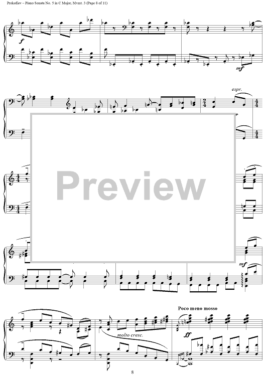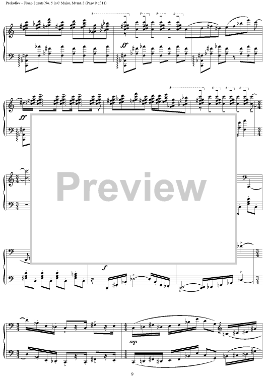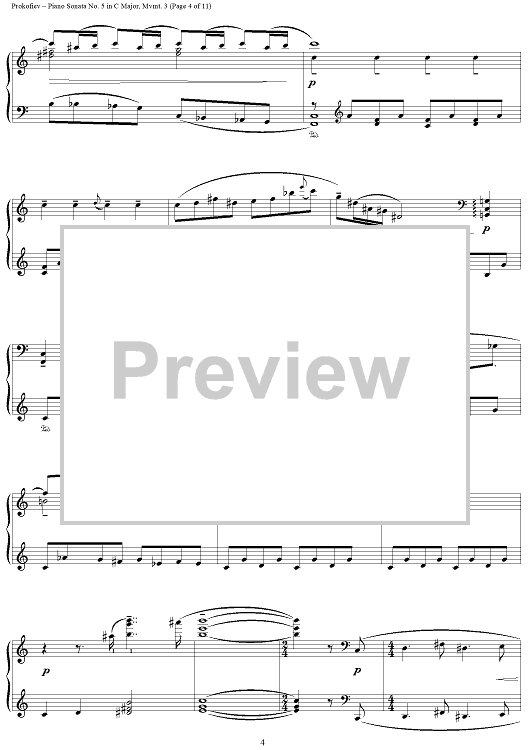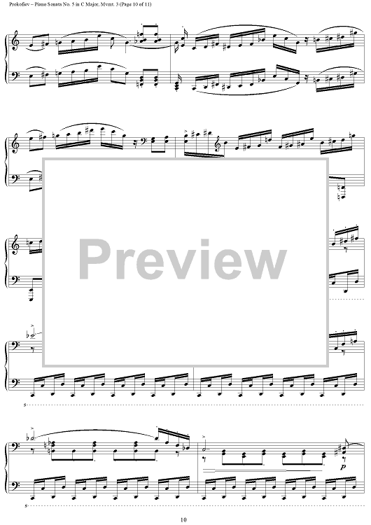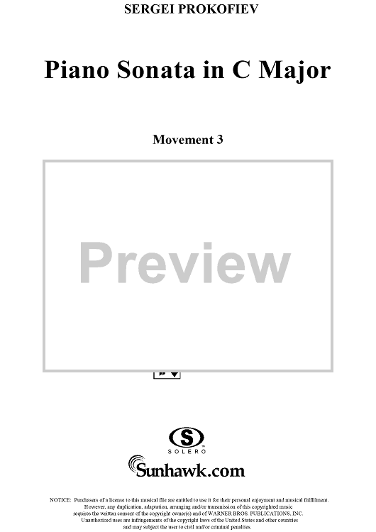 Digital Sheet Music for Piano Sonata in C Major, Op. 38/135, Movement 3 by Sergei Prokofiev scored for Piano Solo; id:254767