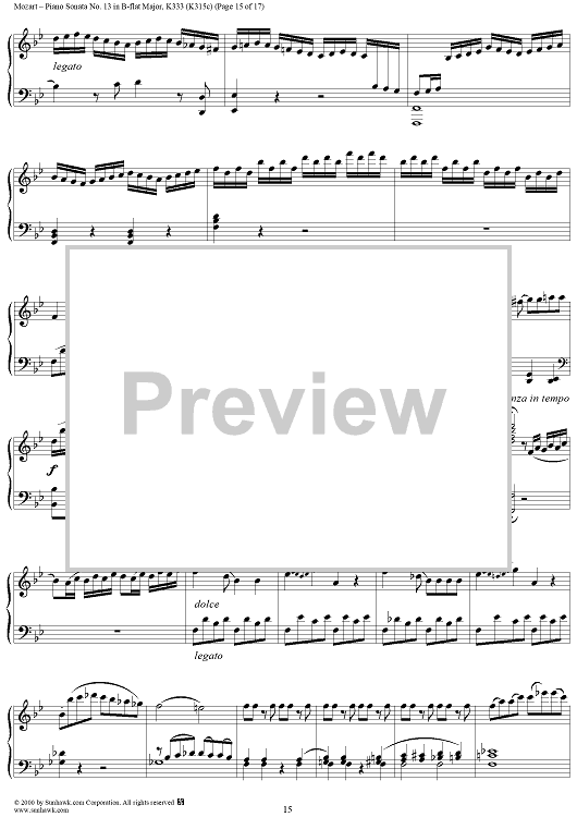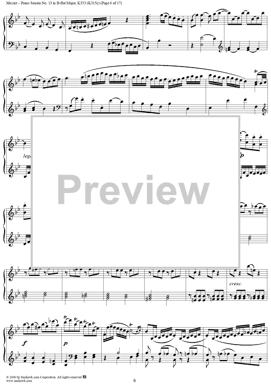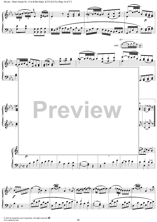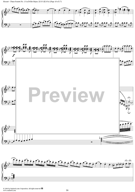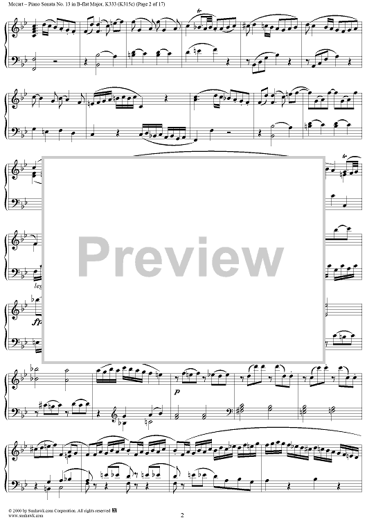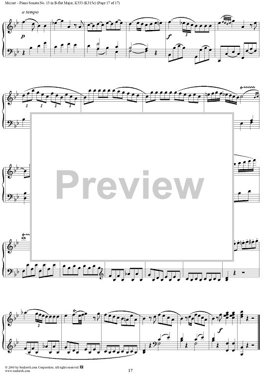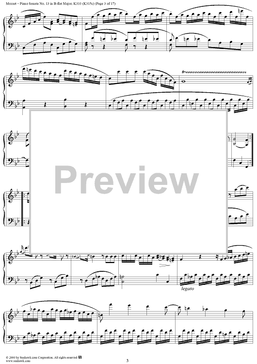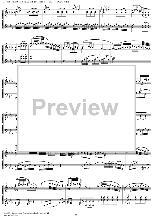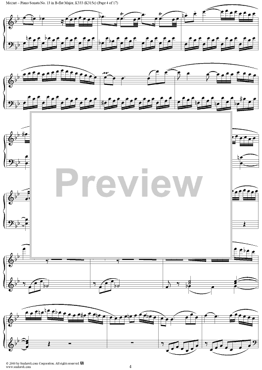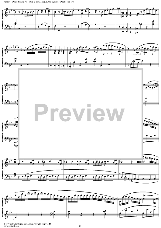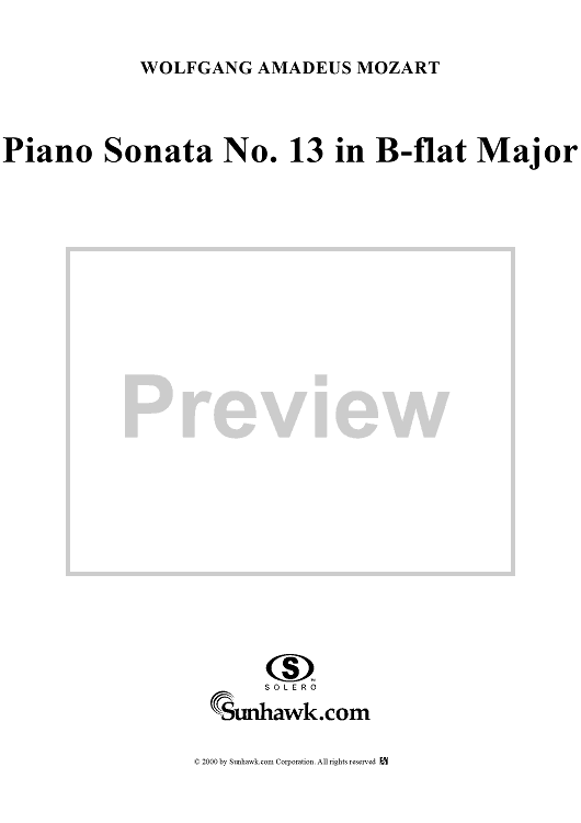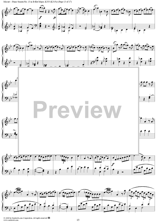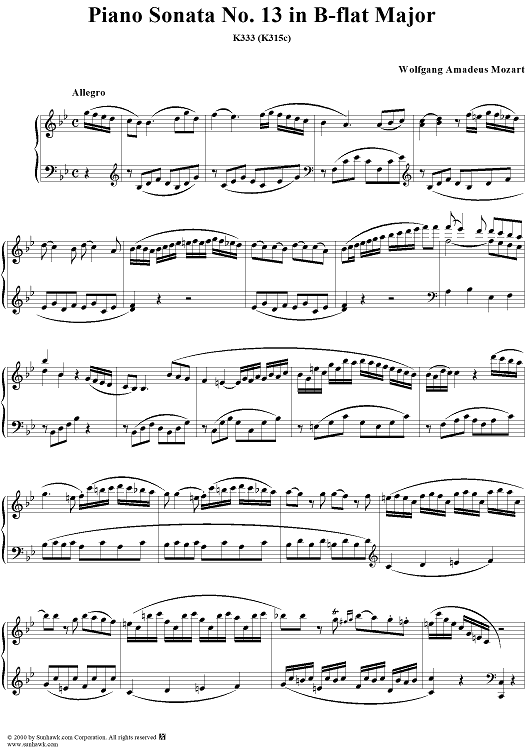 Digital Sheet Music for Piano Sonata No. 13 in B-flat major K333(K315c) by Wolfgang Amadeus Mozart scored for Piano Solo; id:253820