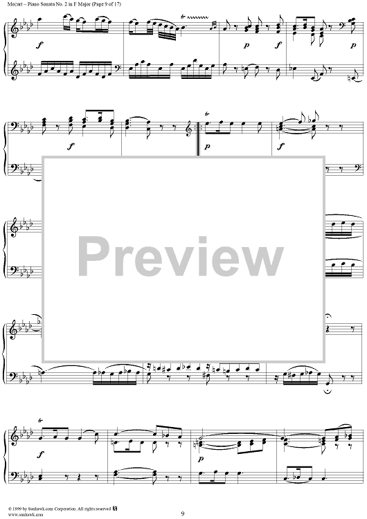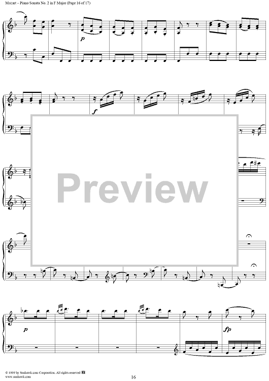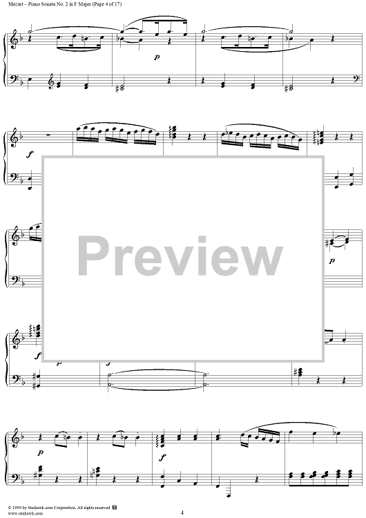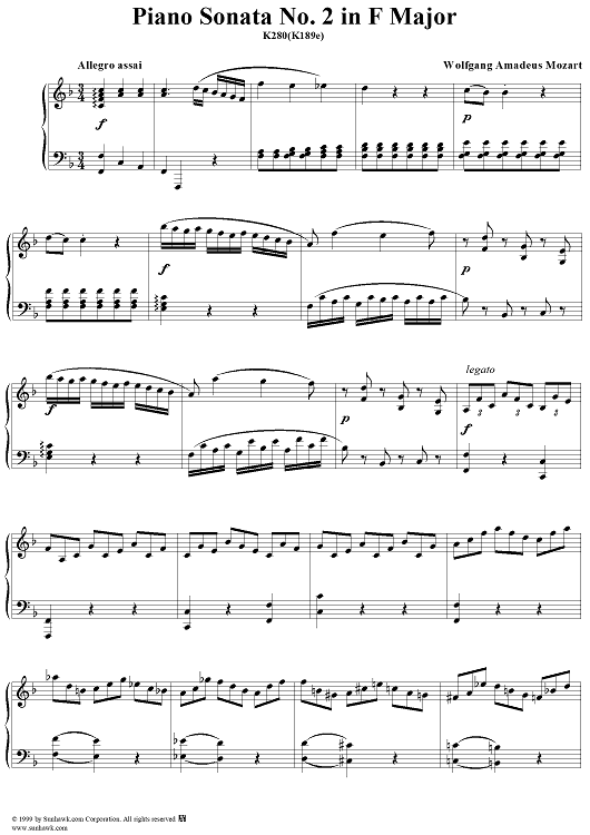 Digital Sheet Music for Piano Sonata No. 2 in F major K280(K189e) by Wolfgang Amadeus Mozart scored for Piano Solo; id:252603