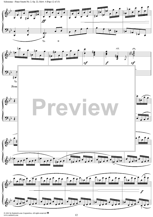 Digital Sheet Music for Piano Sonata No. 2, Movement 4 by Robert Schumann scored for Piano Solo; id:258355