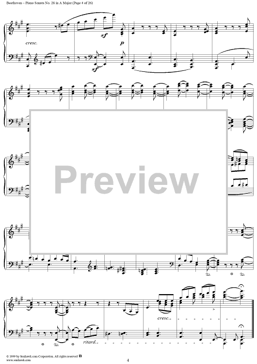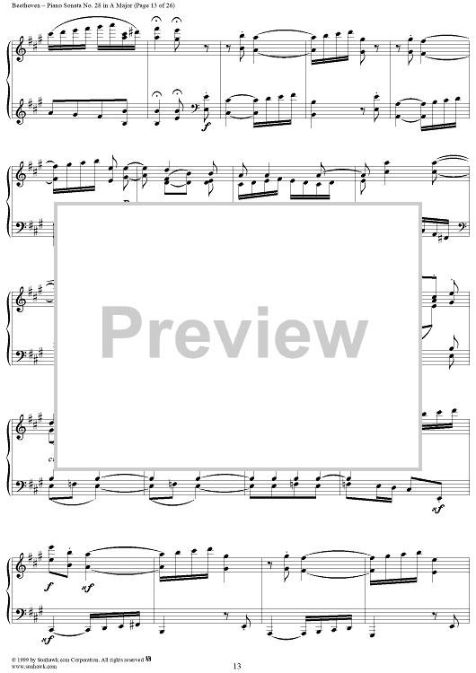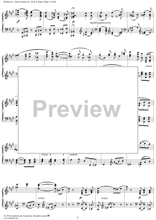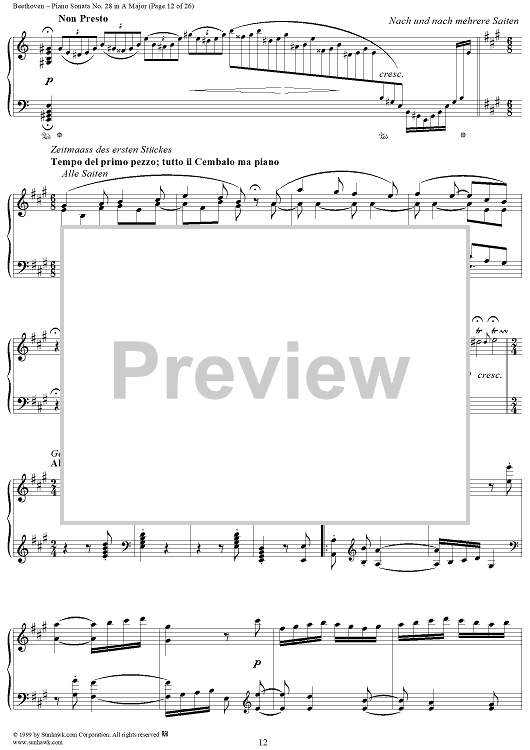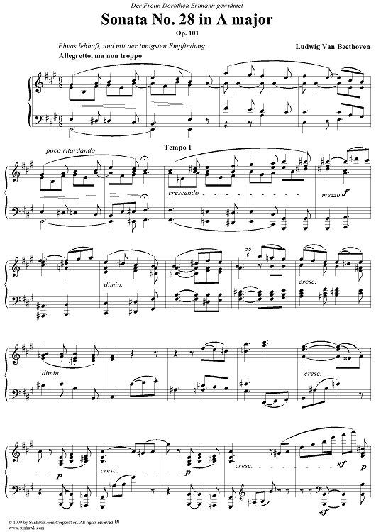 Digital Sheet Music for Piano Sonata No. 28 in A Major, Op. 101 by Ludwig van Beethoven scored for Piano Solo; id:118222